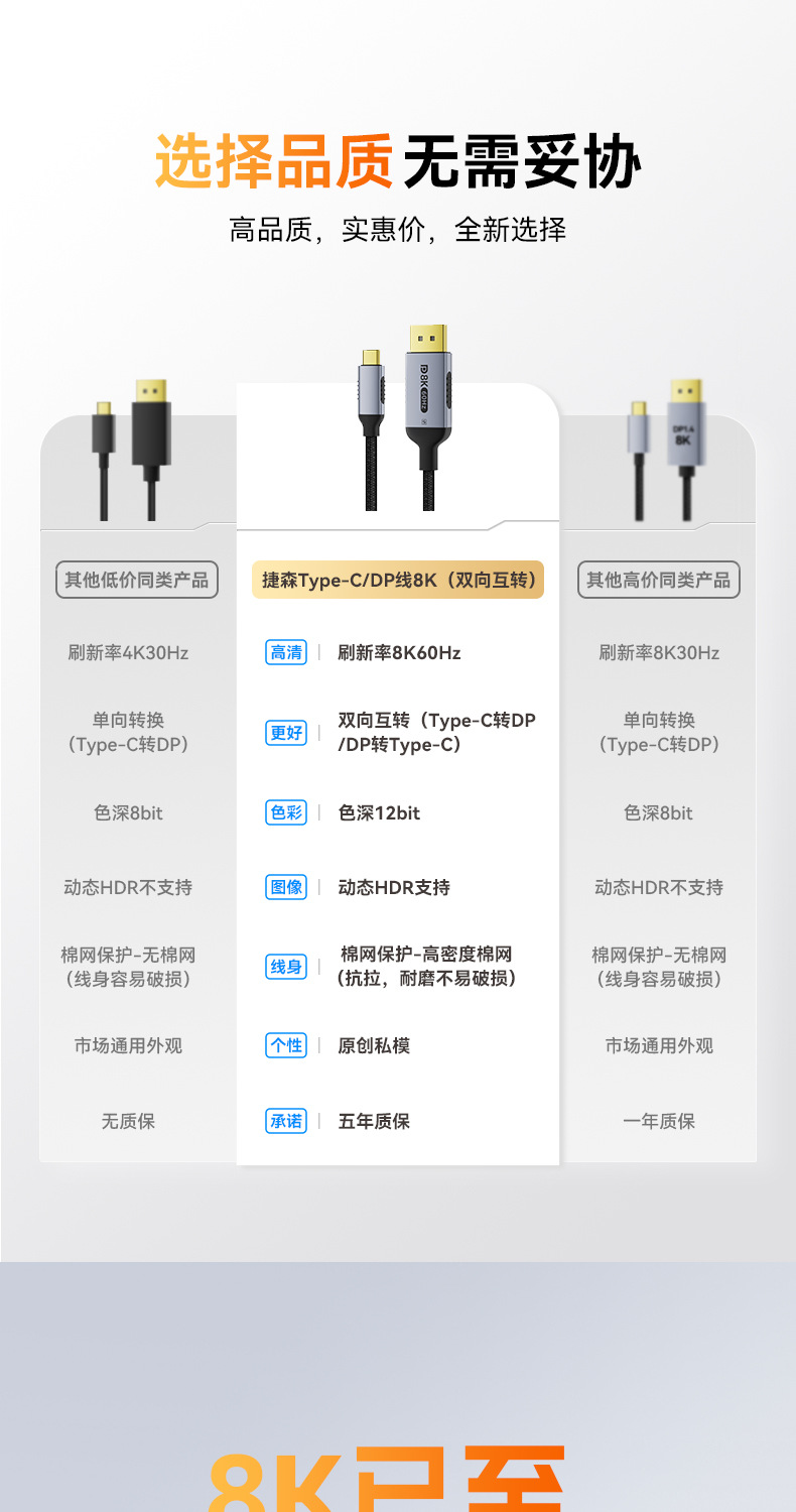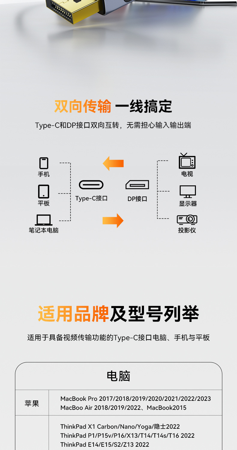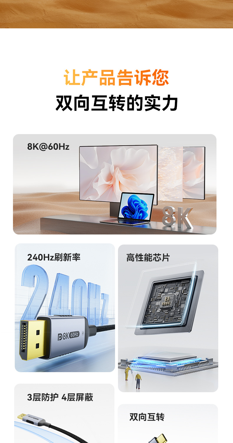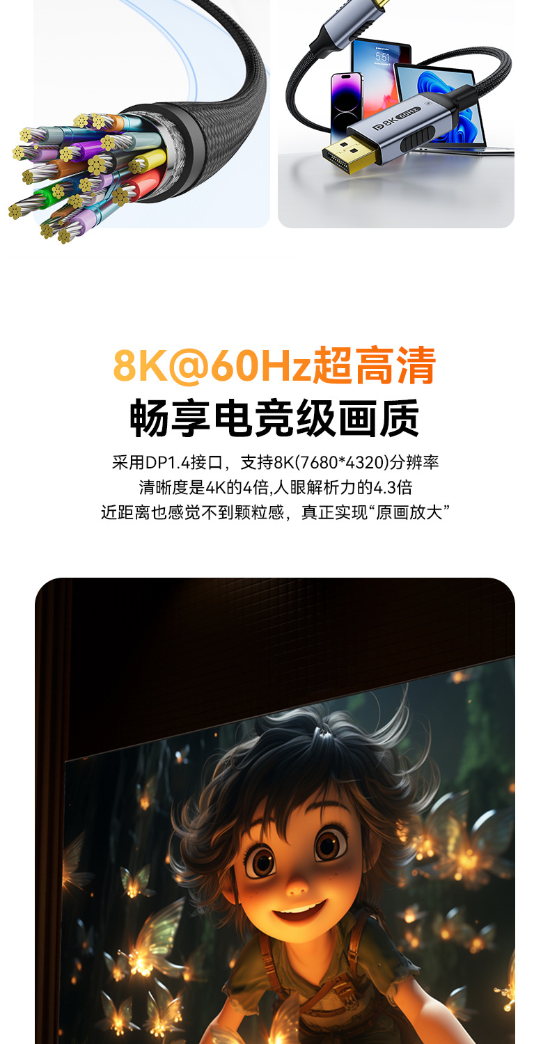 • ZX135 Type-C/DP 라인 1.4 버전 8K 상호 변환(면 메쉬 1.5m 포함)