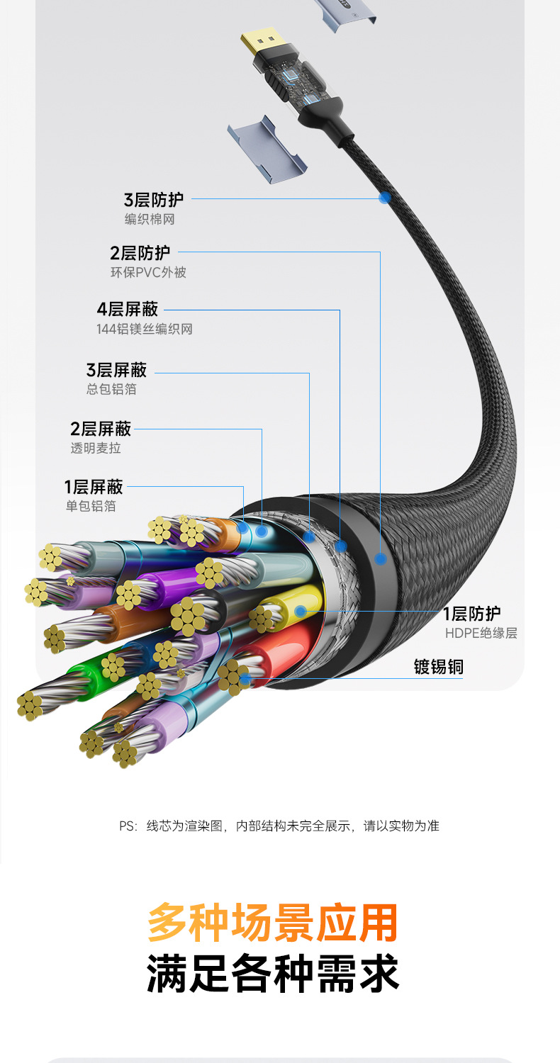 • ZX124 Type-C/DP 라인 1.4 버전 8K 단일 회전(면 메쉬 3m 포함)