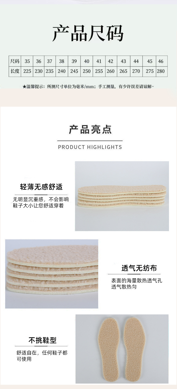 두꺼운 따뜻한 부드러운 편안한 땀 흡수성 탈취제 양모 가을과 겨울을위한 미세하고 필요한 양모 따뜻한 안창스토어 가기