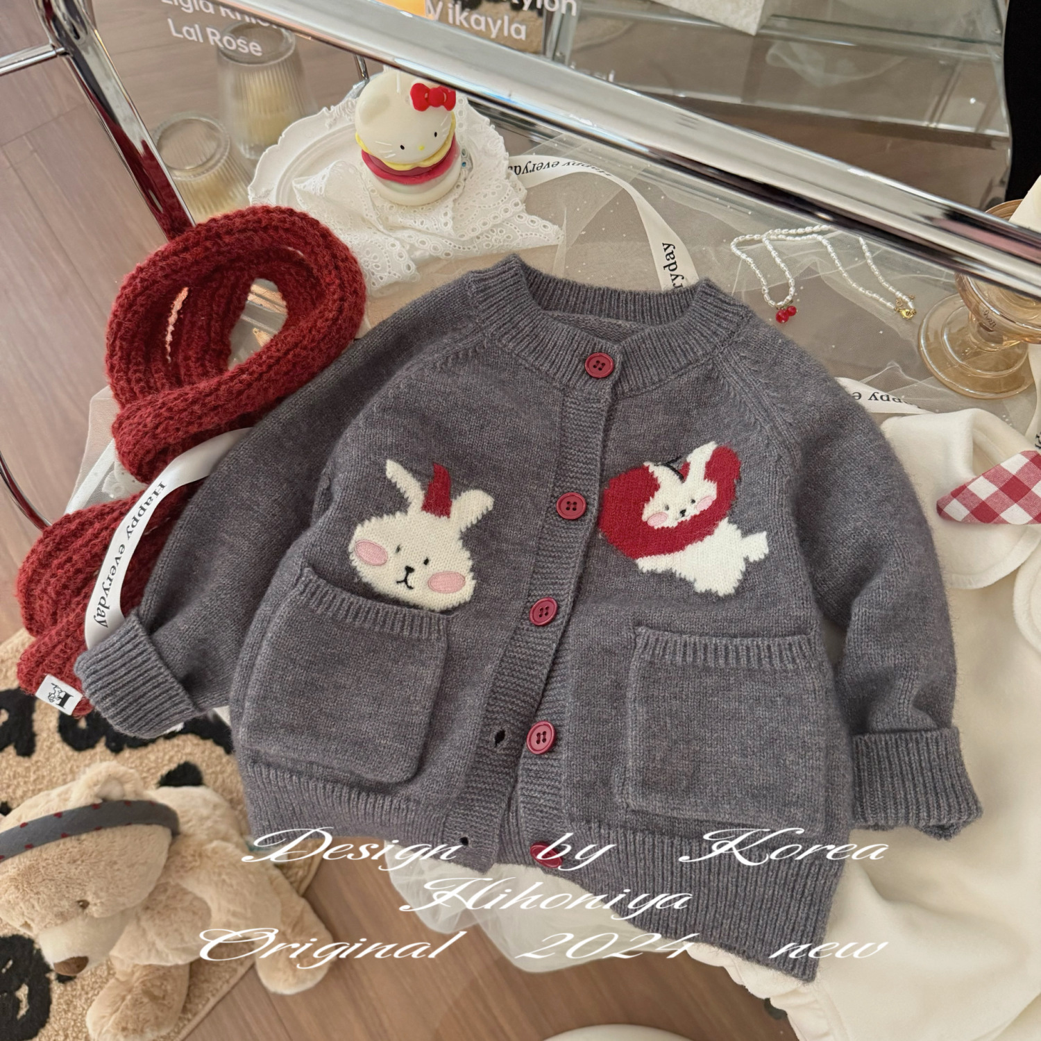 가을 겨울 스타일 긴팔 따뜻한 니트 스웨터 재킷 여자아이 한국 스타일 만화 귀여운 스웨터 가디건 어린이 스웨터스토어 가기