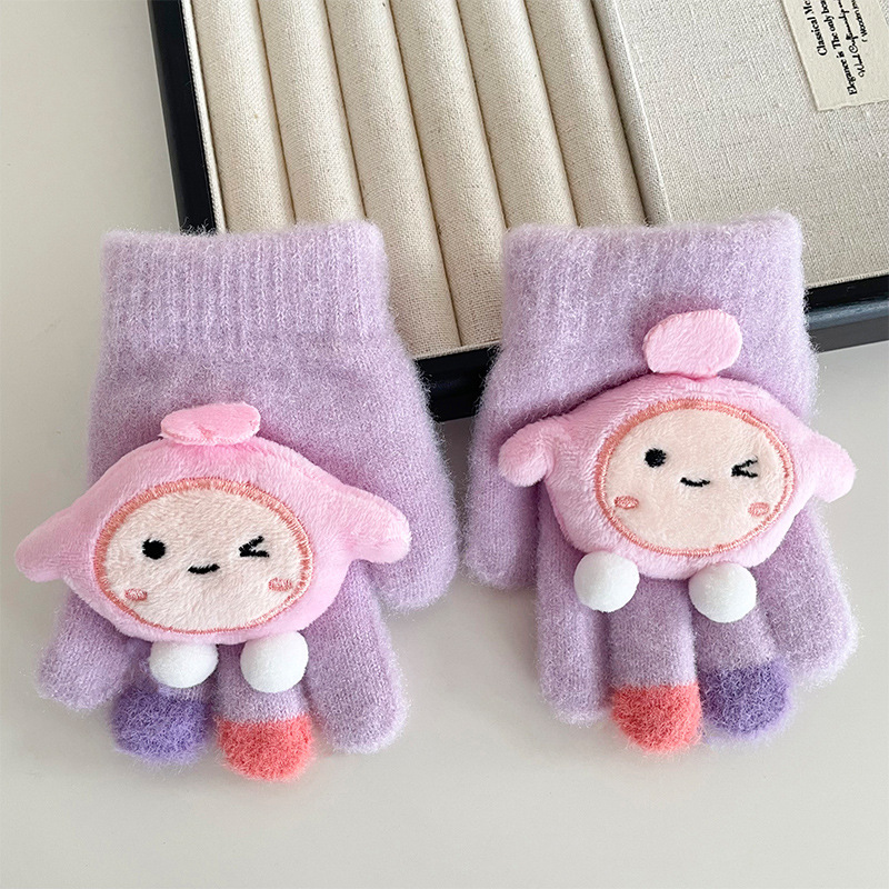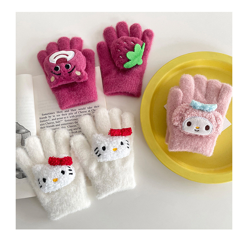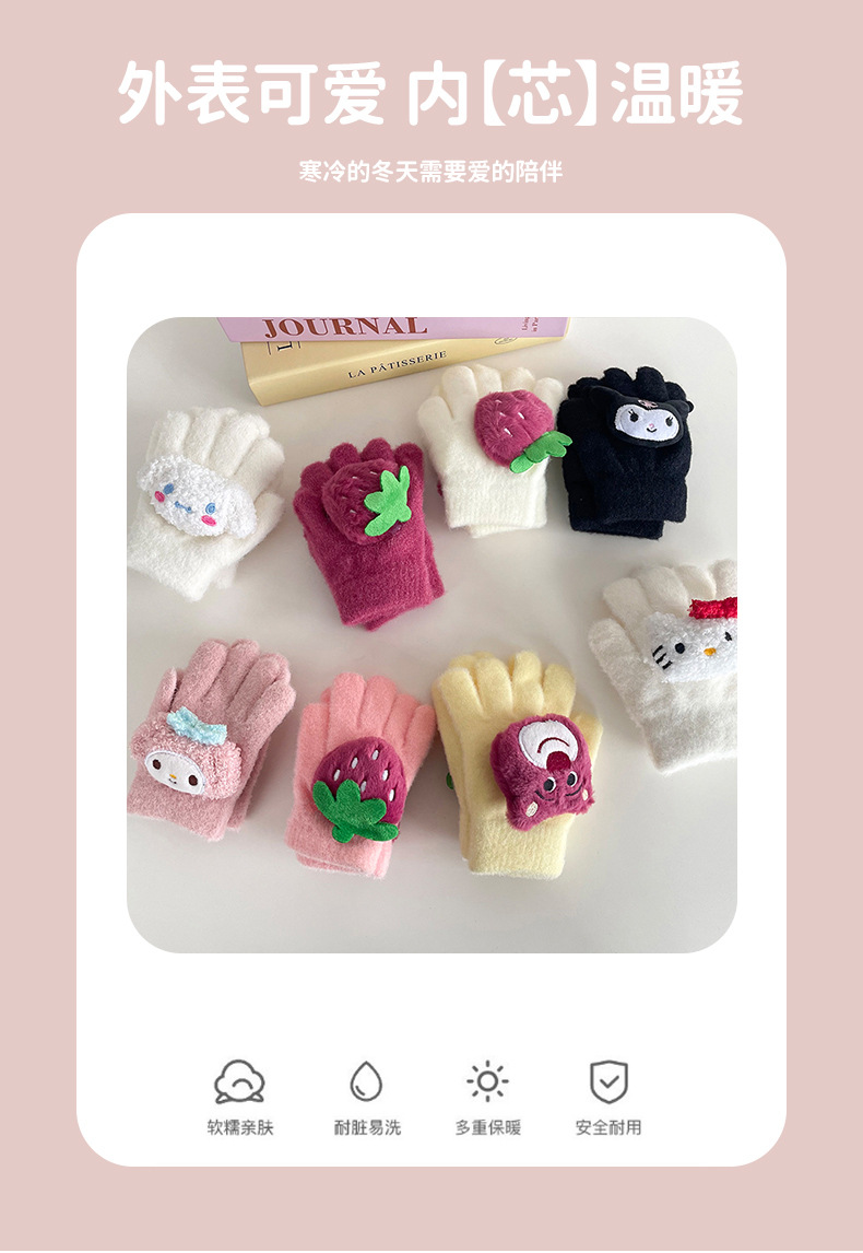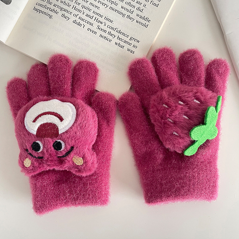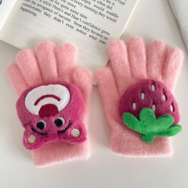 만화 어린이 장갑, 가을 겨울 손가락 장갑, 소년 소녀용, 아기와 학생을 위한 따뜻한 장갑, 겨울 필기용 다섯 손가락 장갑