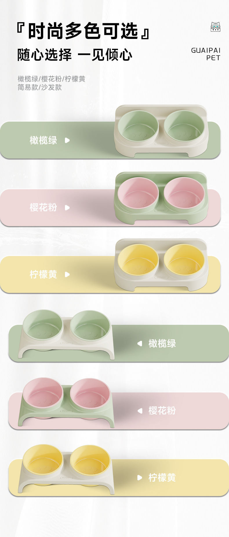 Meishi 환경 보호 고양이 음식 분지 고양이 밥 그릇 두 배 사발 비스듬한 입 개 그릇 식수 그릇 식수 보울 자궁 경부 척추 안티 노크 보호