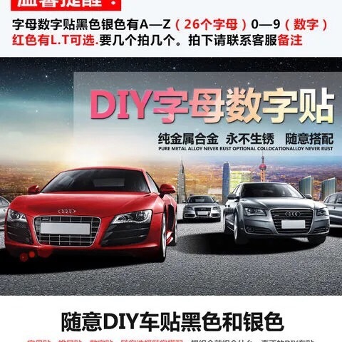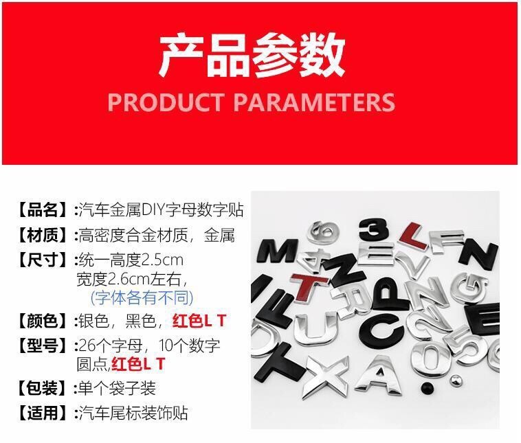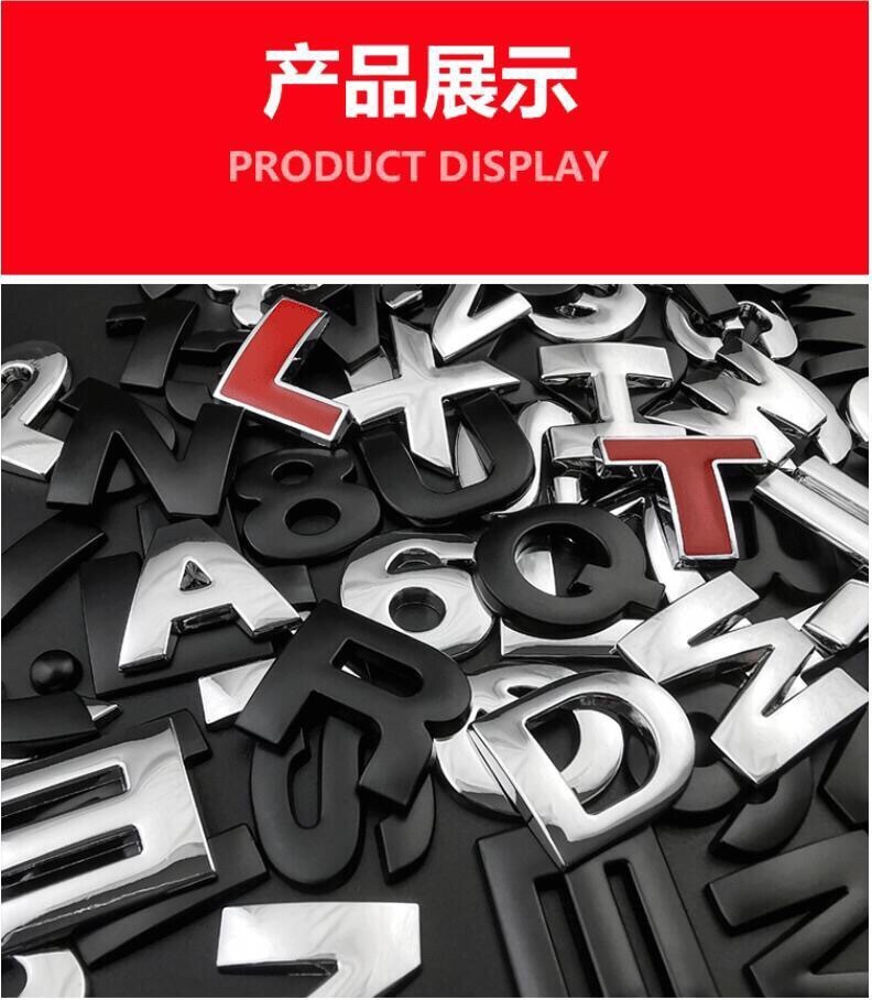 공장 직접 공급 아연 합금 고체 금속 문자 자동차 3D 문자 자동차 스티커 영어 문자 자동차 로고 영숫자스토어 가기