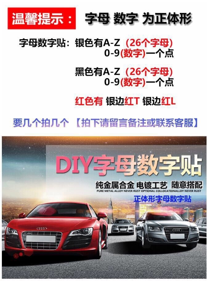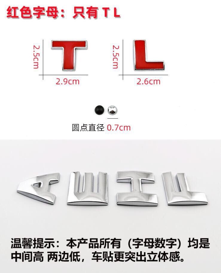 공장 직접 공급 아연 합금 고체 금속 문자 자동차 3D 문자 자동차 스티커 영어 문자 자동차 로고 영숫자
