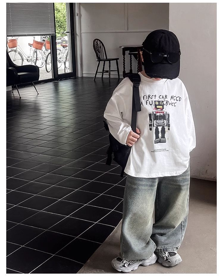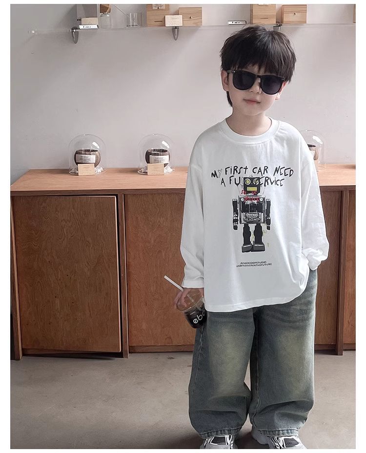 소년 티셔츠 긴 소매 어린이 봄과 가을 바닥 셔츠 2024 새로운 초가을 아동복 소년 한국 잘 생긴 탑스토어 가기