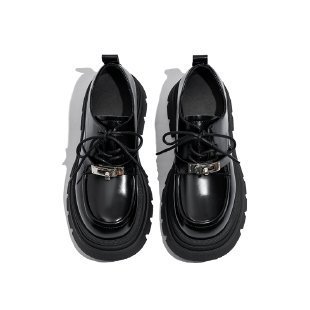 두꺼운 밑창 레이스 업 로퍼 여성의 2024 새로운 프랑스 스타일 두꺼운 밑창 영국 스타일 가죽 신발 여성의 메리 제인 신발 JK 싱글 레이어 신발스토어 가기