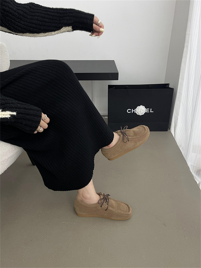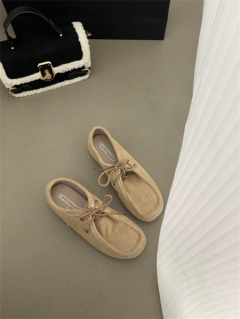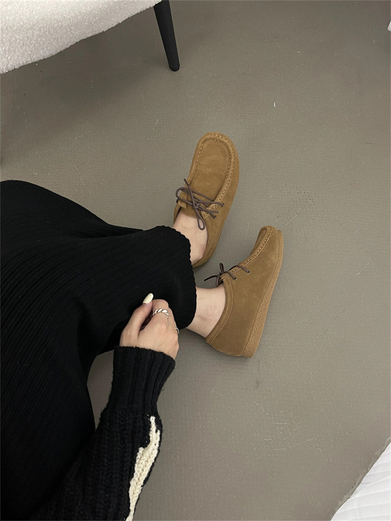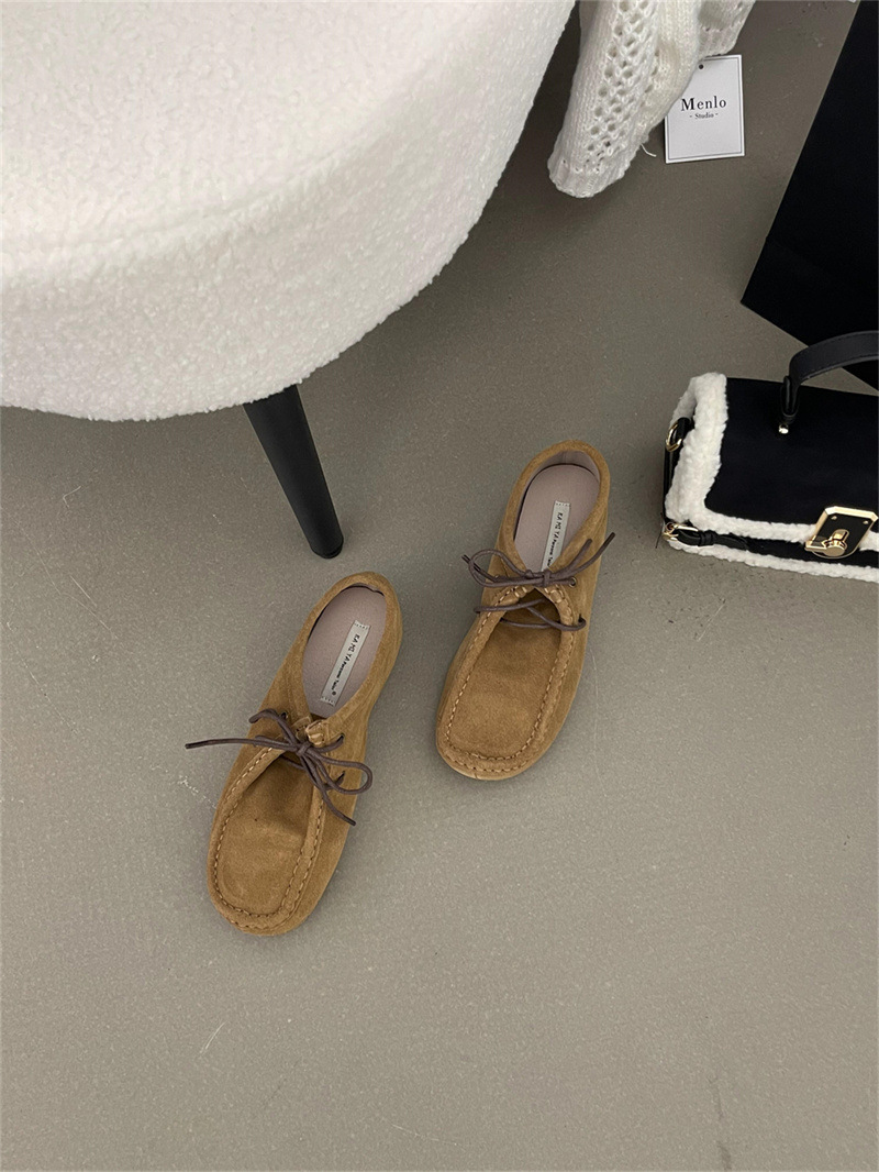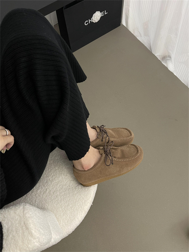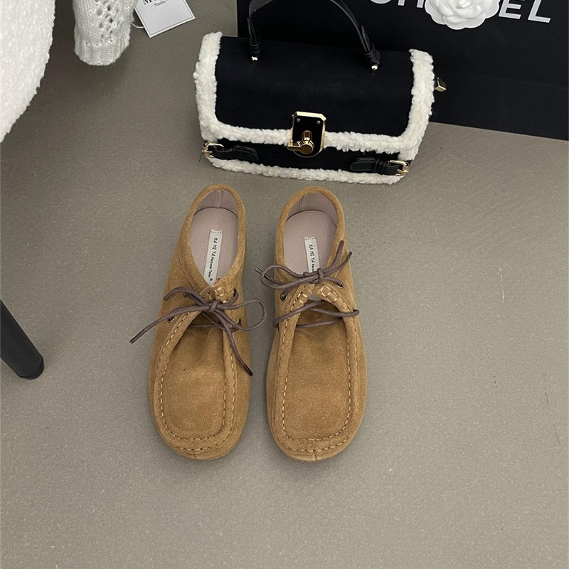 빈티지 레이스 업 캥거루 신발 여성의 2024 가을 및 겨울 새로운 라운드 발가락 로우 탑 두꺼운 밑창 캐주얼 싱글 레이어 신발 버켄 네스 작은 가죽 신발스토어 가기
