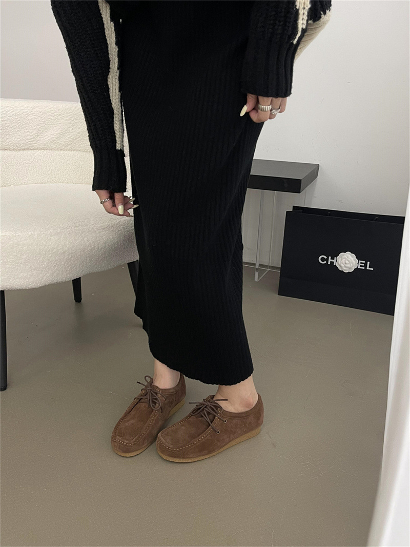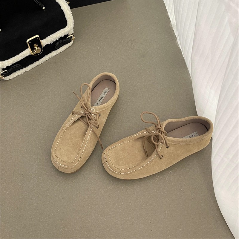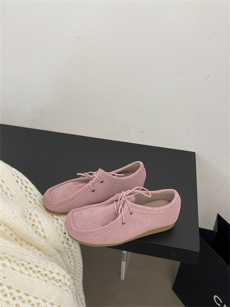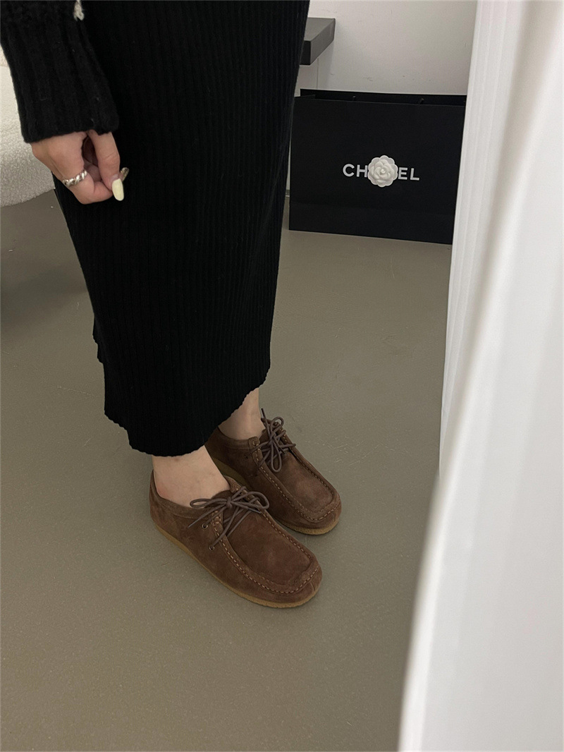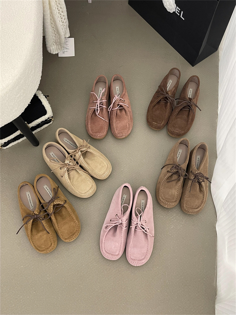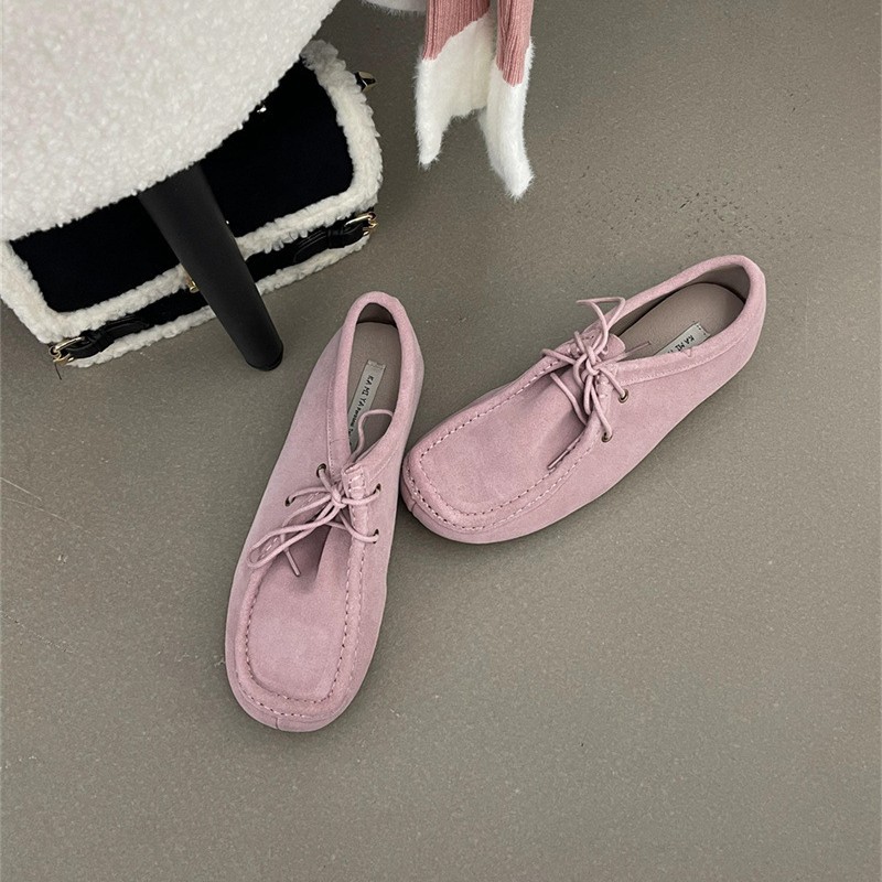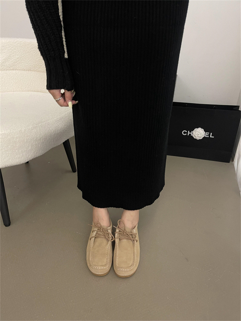 빈티지 레이스 업 캥거루 신발 여성의 2024 가을 및 겨울 새로운 라운드 발가락 로우 탑 두꺼운 밑창 캐주얼 싱글 레이어 신발 버켄 네스 작은 가죽 신발스토어 가기
