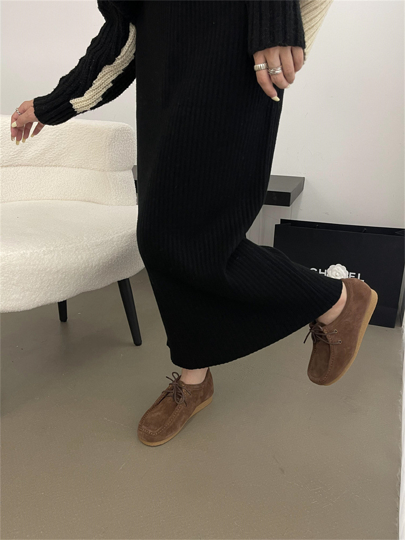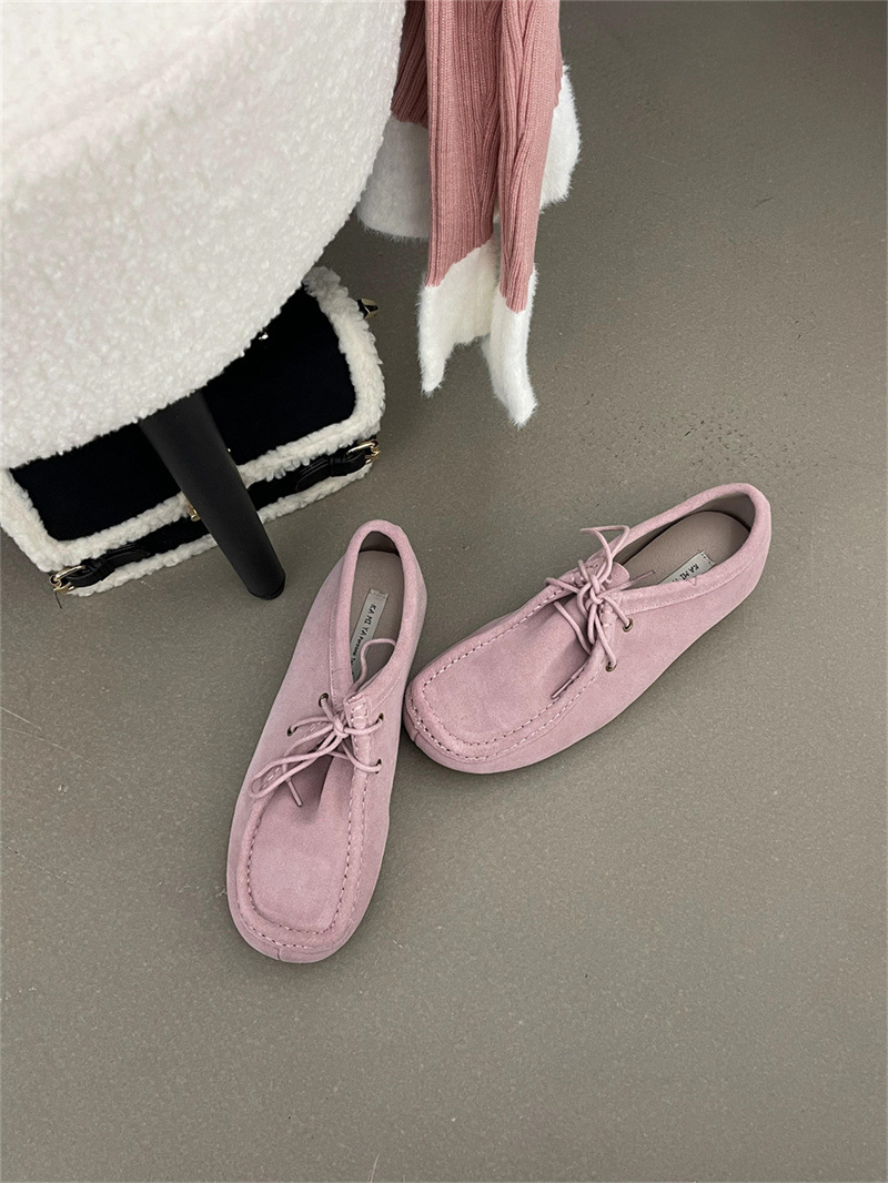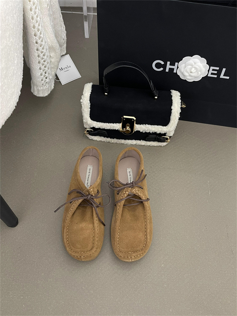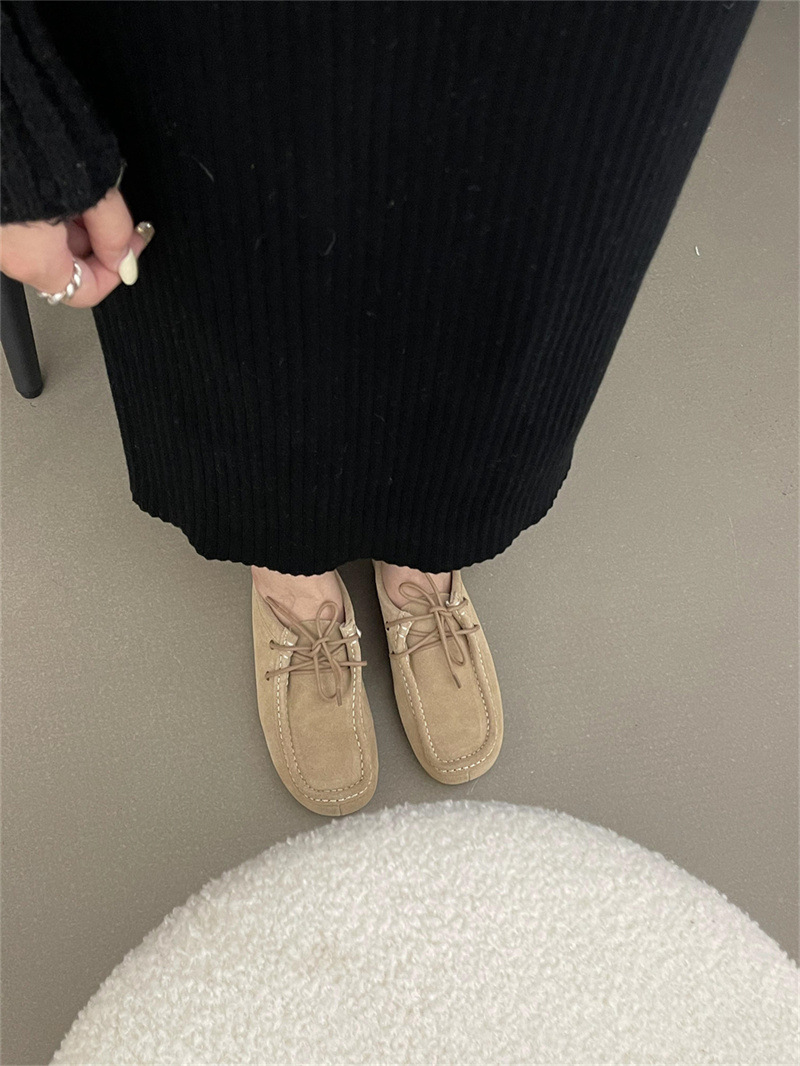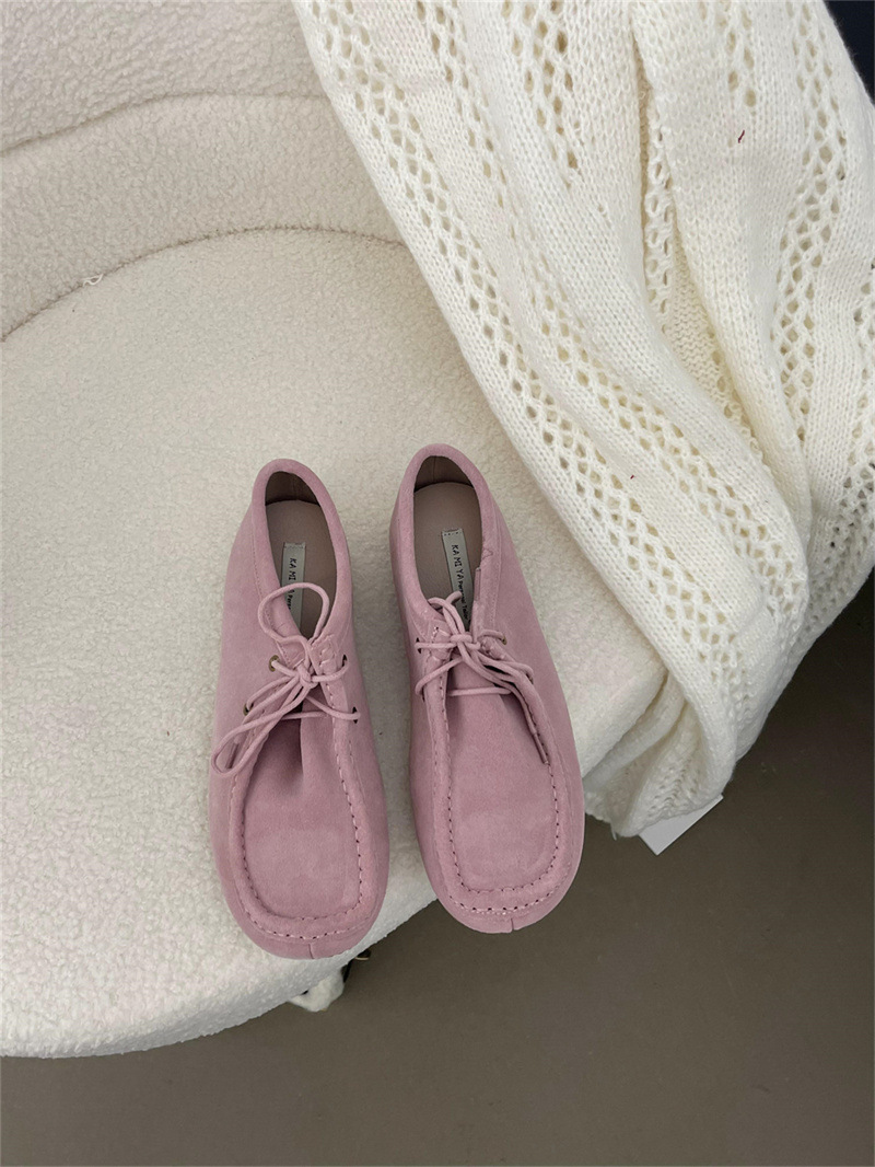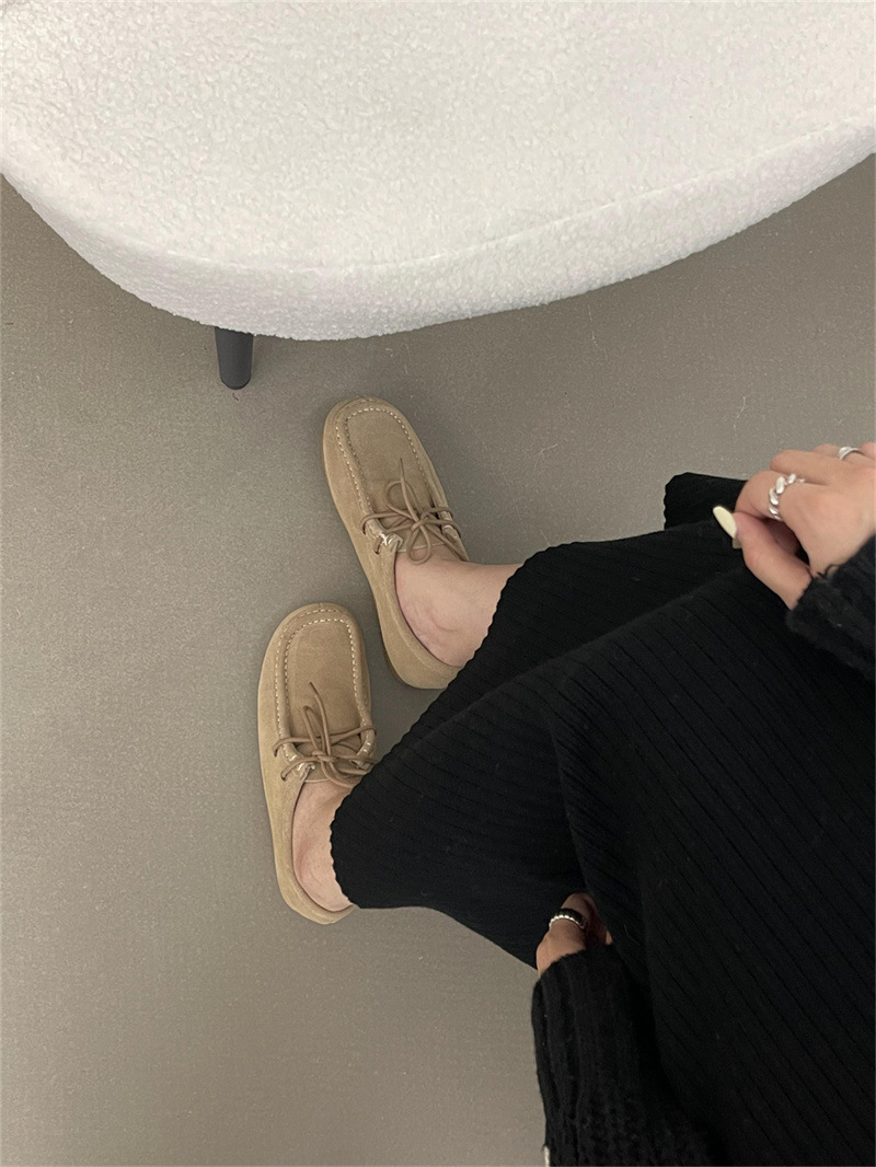 빈티지 레이스 업 캥거루 신발 여성의 2024 가을 및 겨울 새로운 라운드 발가락 로우 탑 두꺼운 밑창 캐주얼 싱글 레이어 신발 버켄 네스 작은 가죽 신발스토어 가기