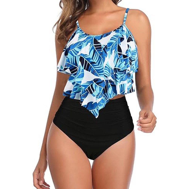 유럽과 미국의 섹시한 여자 러플 비키니 수영복 하이 벨트 가슴 패드 여자 비키니 분할 세트 수영복스토어 가기