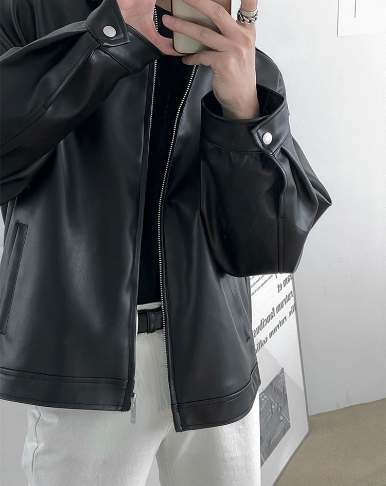 가죽 자켓 남자 2023 봄 새로운 유행 한국 가을 PU 가죽 캐주얼 야구 옷 오토바이 재킷 트렌디