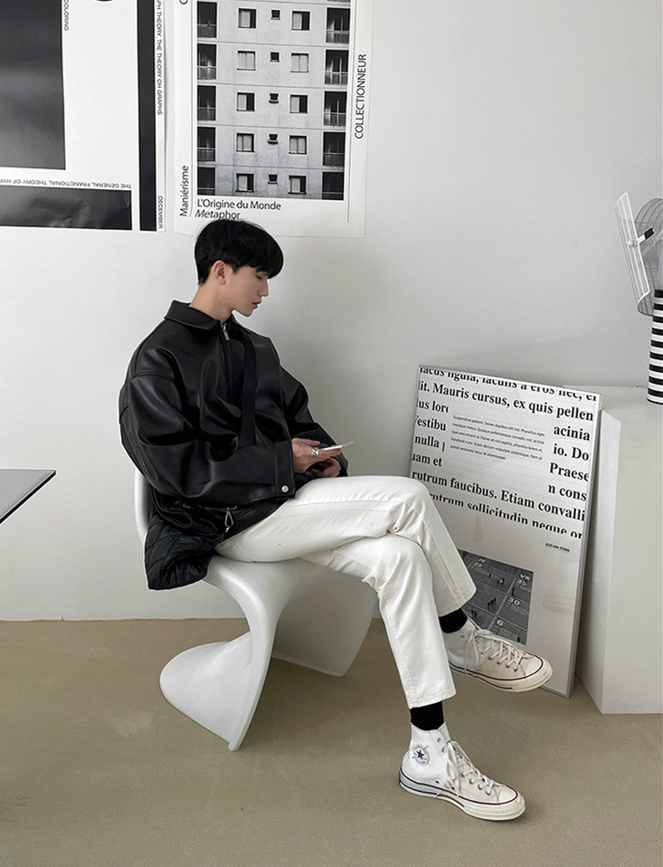 가죽 자켓 남자 2023 봄 새로운 유행 한국 가을 PU 가죽 캐주얼 야구 옷 오토바이 재킷 트렌디스토어 가기