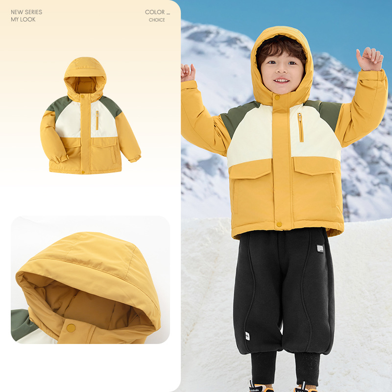 Mengbeiyan 아동복, 남아용 다운 재킷, 아동용 재킷, 3중 방수 및 두꺼운 베이비 상의, 따뜻하고 대비되는 색상의 스플라이스 덕 다운
