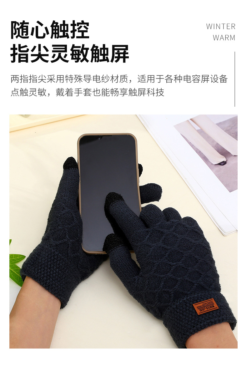 가을과 겨울 니트 다이아몬드 모양의 따뜻한 장갑 전체 손가락 냉장 터치 스크린 장갑 버블 니트 울 장갑 도매