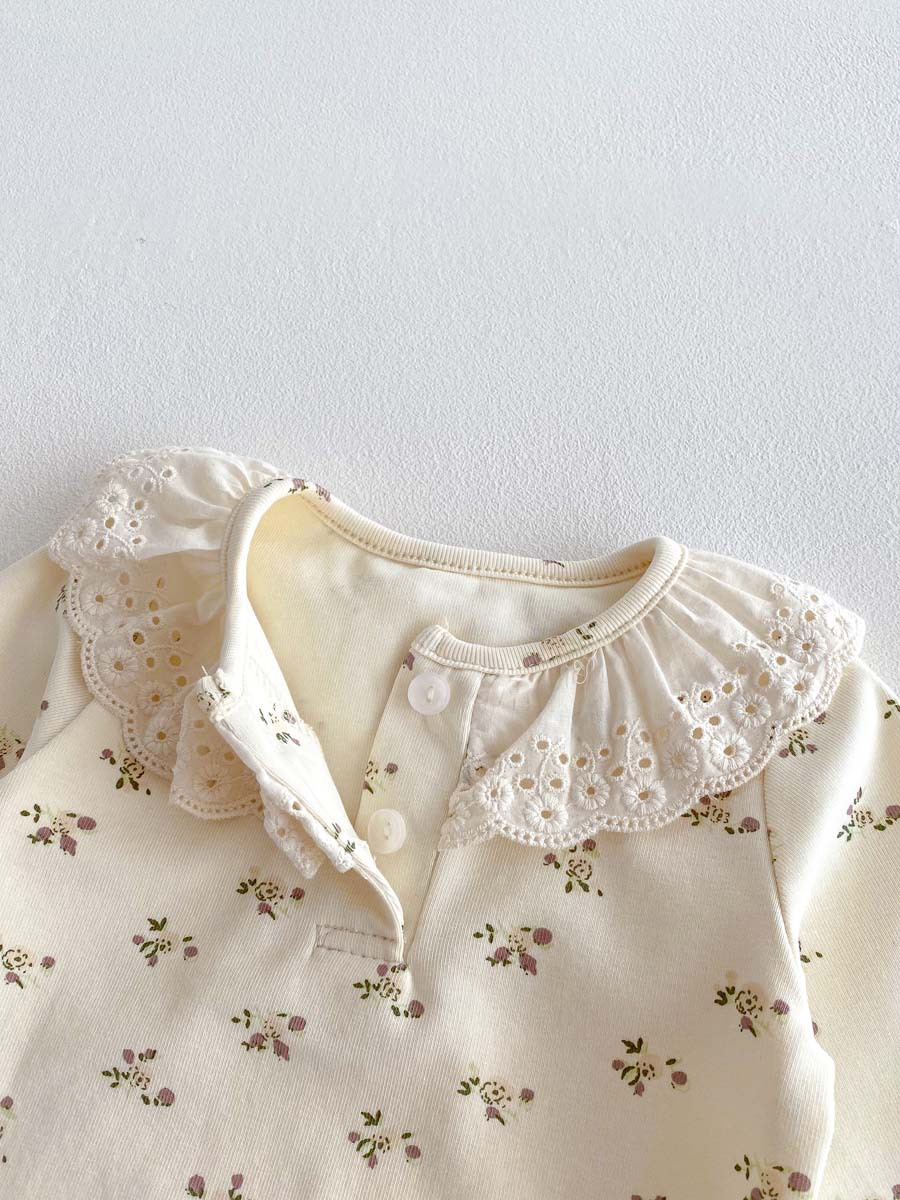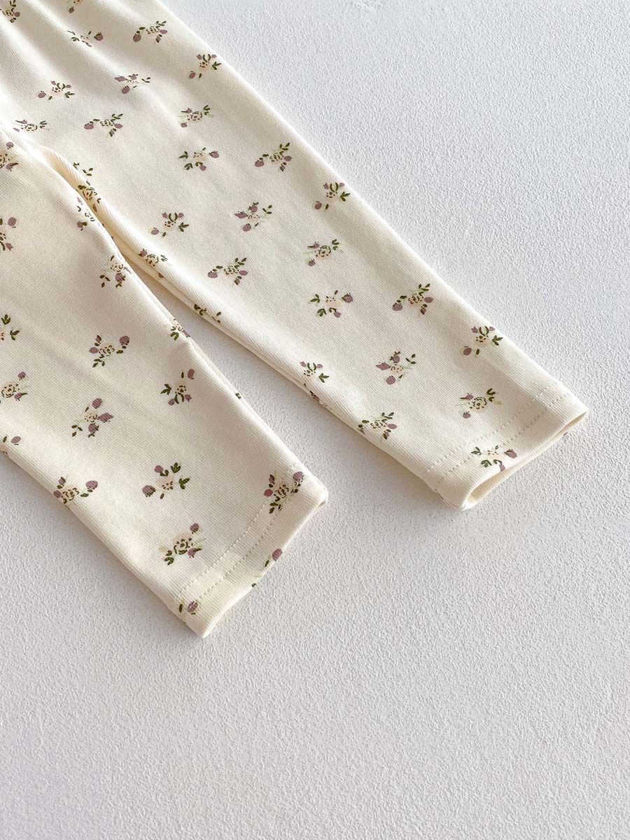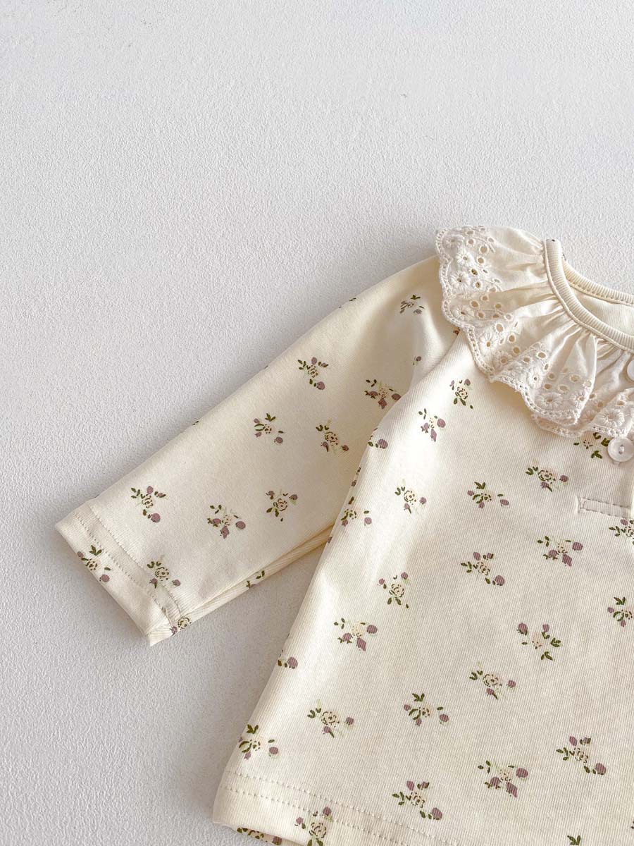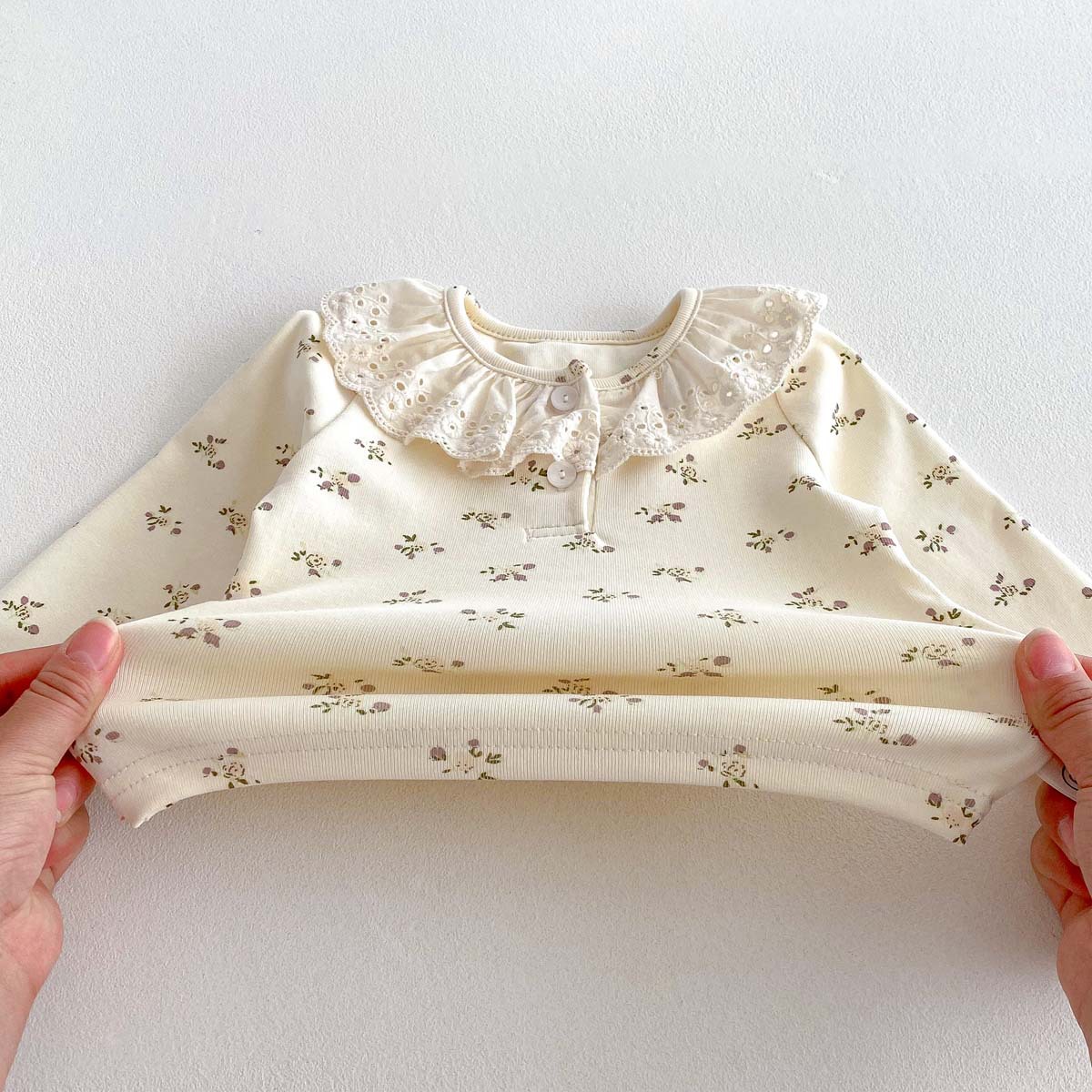 봄가을 아동용 꽃무늬 긴팔 세트 유아 여아용 러플 칼라 홈웨어 투피스 세트 이너웨어 겸용