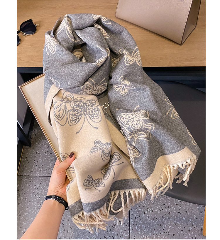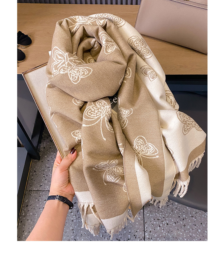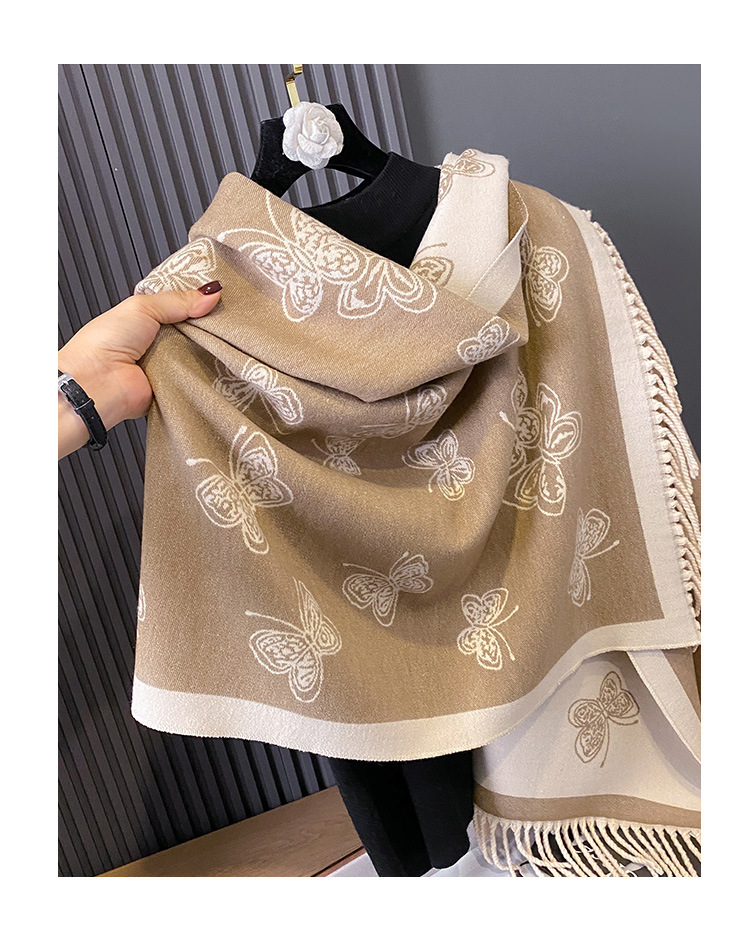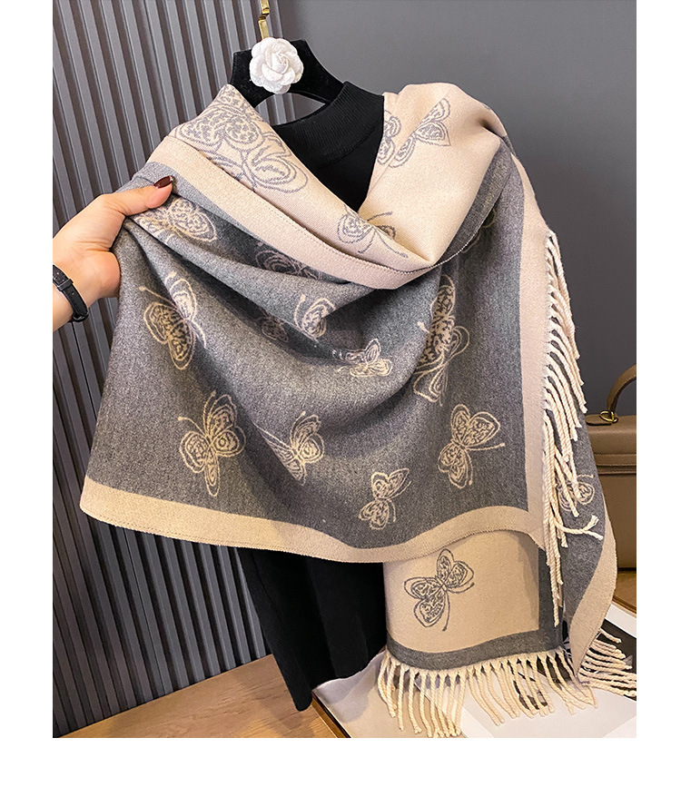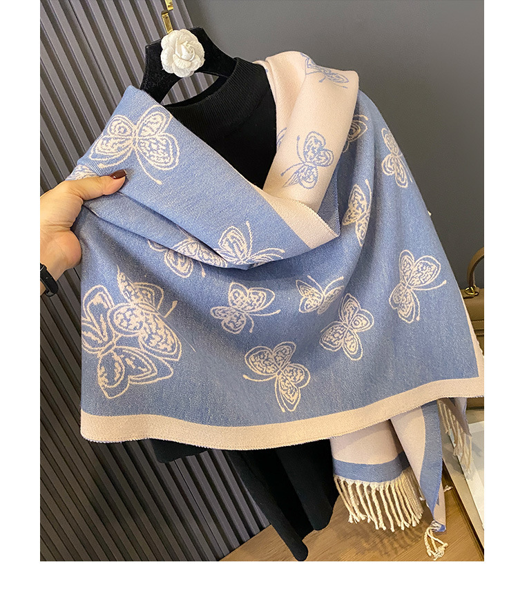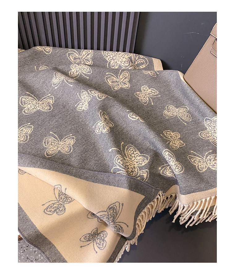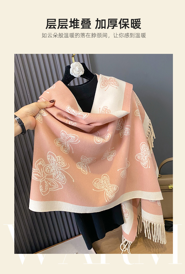 很正~可爱蝴蝶双面加厚提花围巾冬季女办公室大披肩外搭保暖