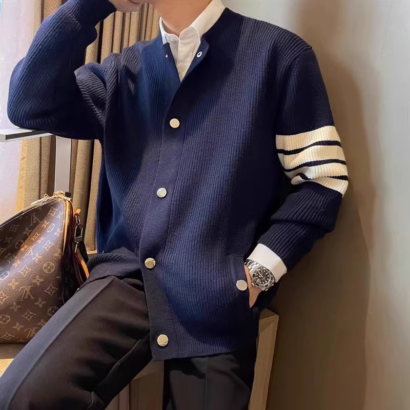 가을과 겨울 옷깃 4 방향 바 카디건 스웨터 남성용 겉옷 니트웨어 재킷 라이트 성숙한 하이 엔드 캐주얼 자켓스토어 가기