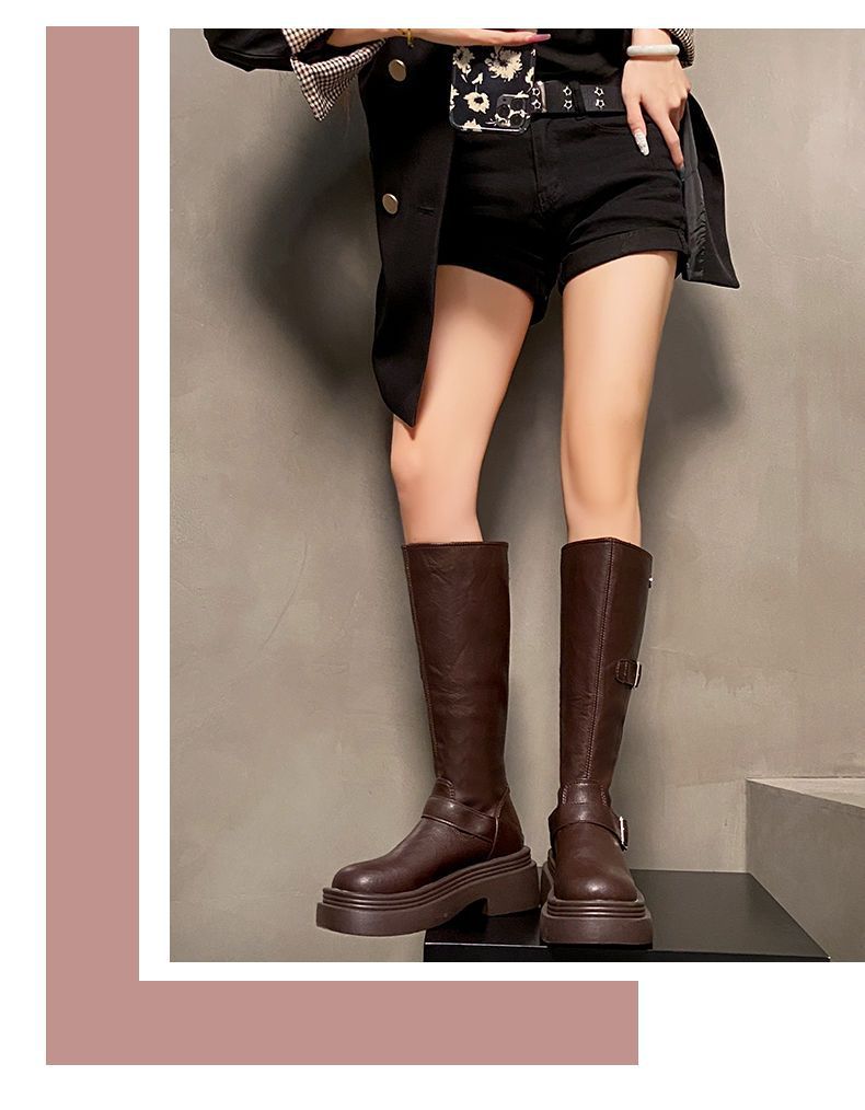 두꺼운 힐 두꺼운 바닥 슬리밍 스트레치 부츠 작은 부츠 다크 브라운 작은 부츠 여성의 2024 새로운 가을과 겨울스토어 가기