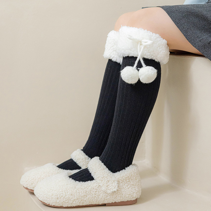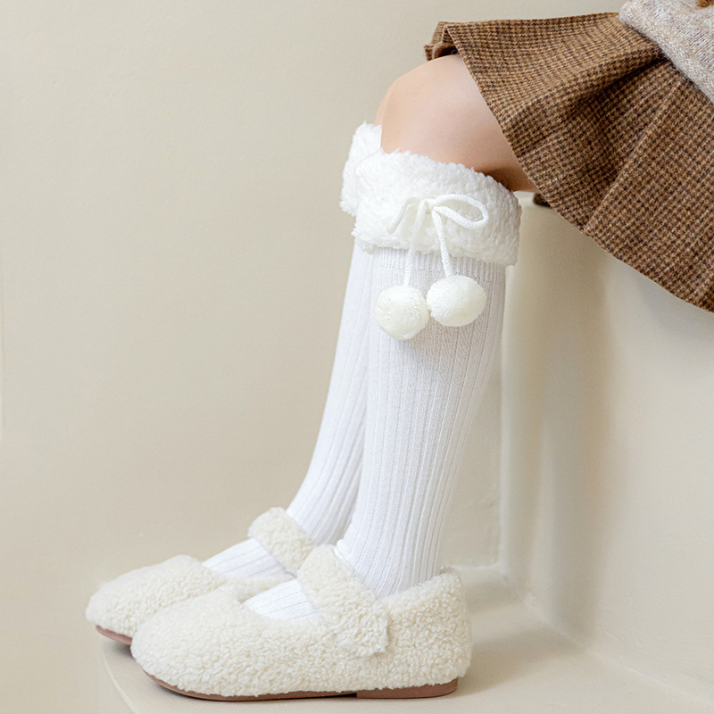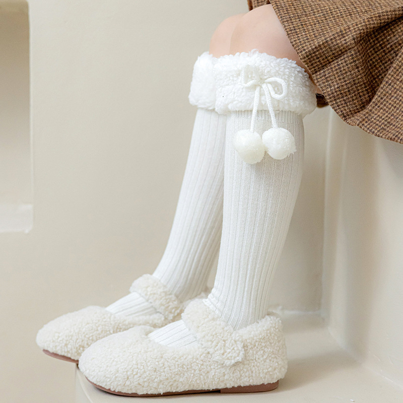 소녀 가을 양말 스타킹 어린이 가을과 겨울 코일 양말 높은 배럴 겨울 두꺼운 스타킹 모피 볼 양털