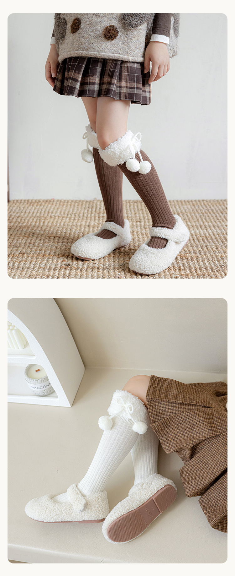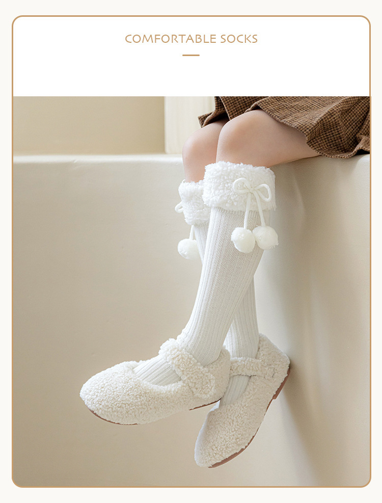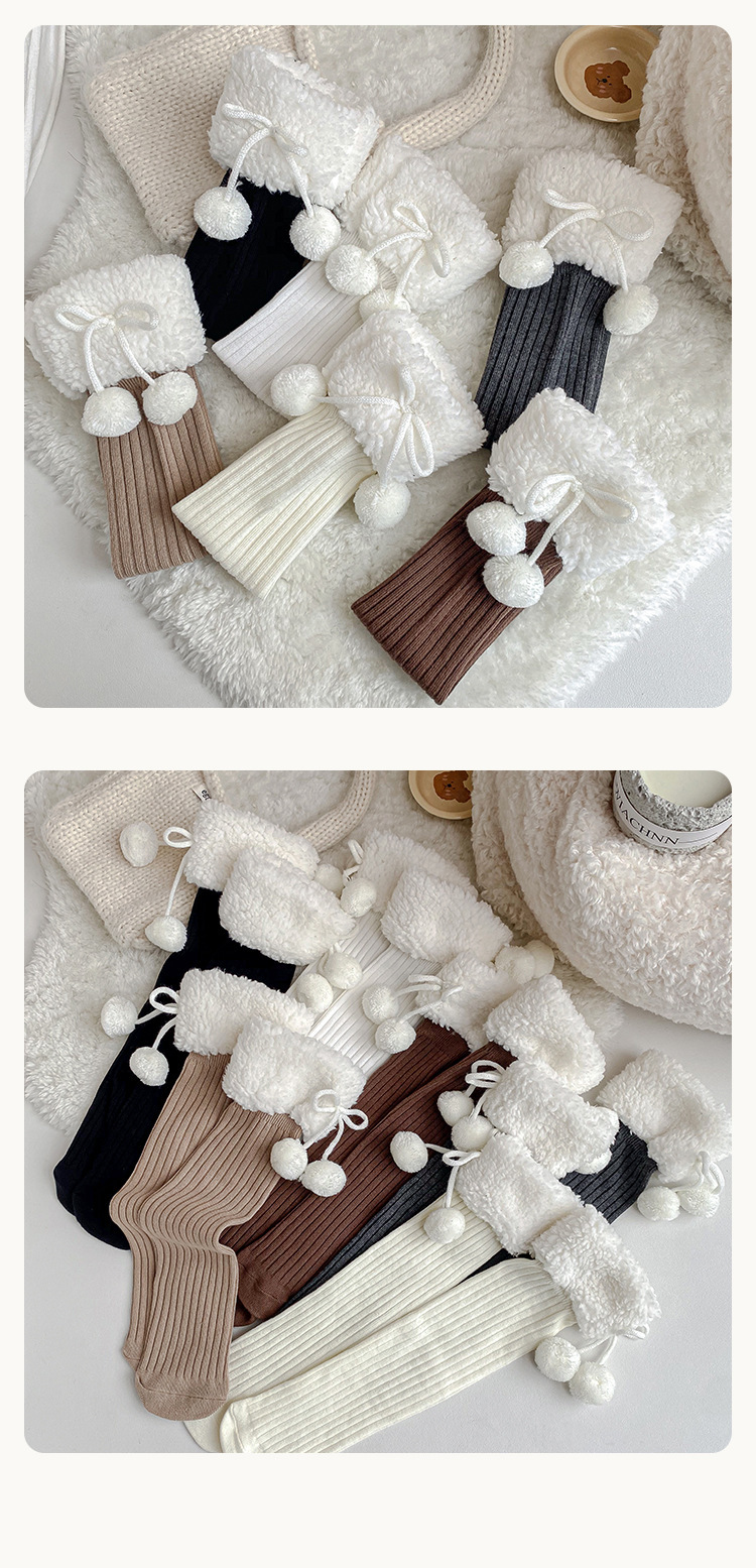 소녀 가을 양말 스타킹 어린이 가을과 겨울 코일 양말 높은 배럴 겨울 두꺼운 스타킹 모피 볼 양털스토어 가기