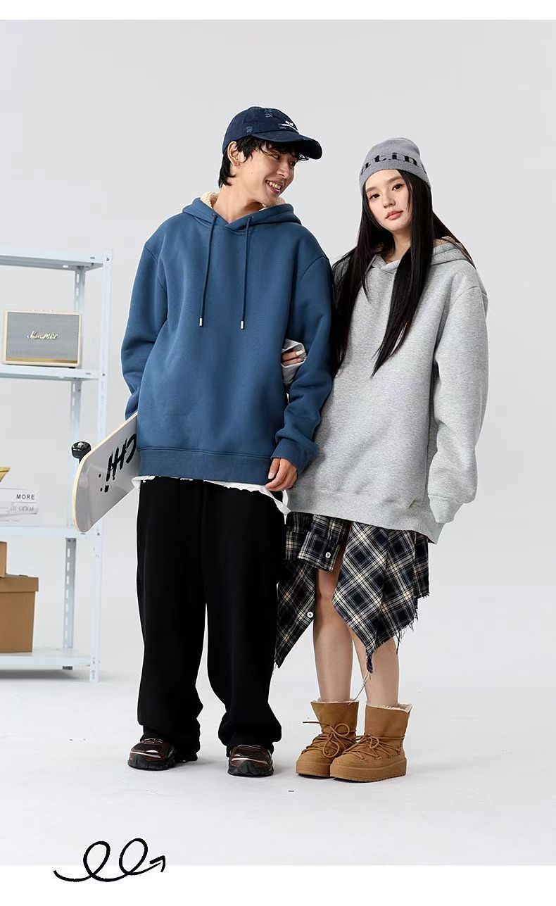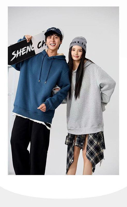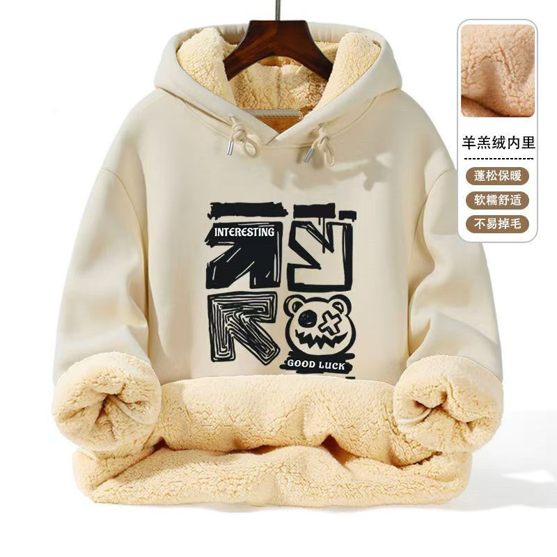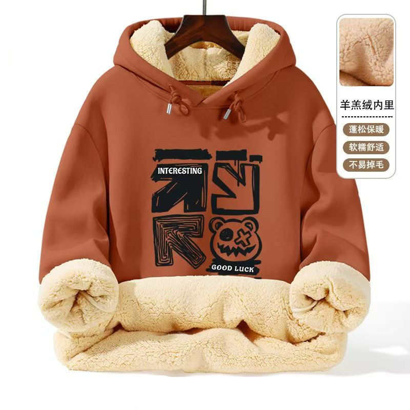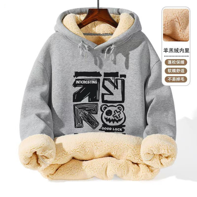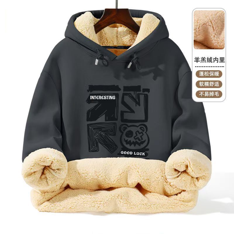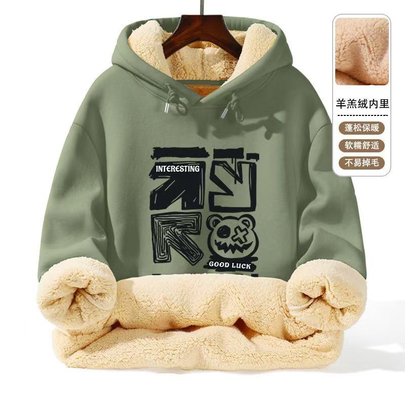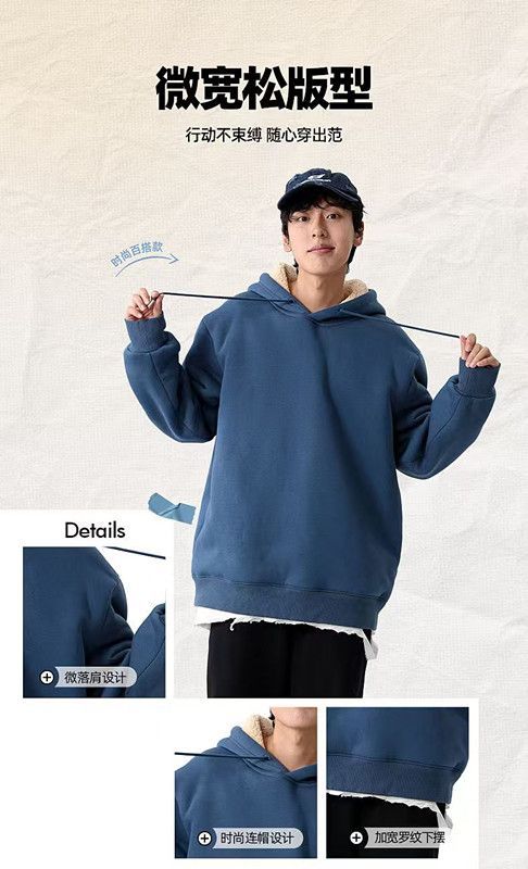 두꺼운 양고기 벨벳 후드 스웨터 남자 세련된 겨울 기모 따뜻한 냉방 후드 재킷 남자 풀오버 1/2스토어 가기