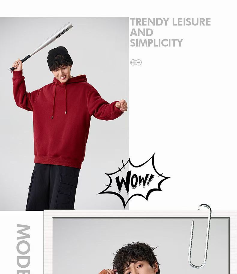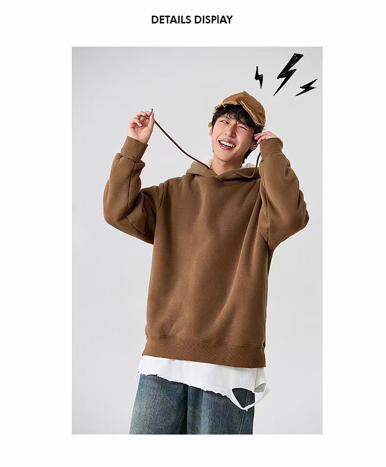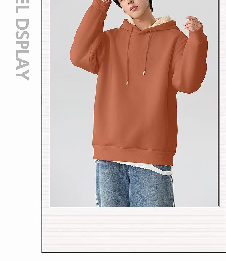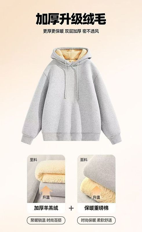 두꺼운 양고기 벨벳 후드 스웨터 남자 세련된 겨울 기모 따뜻한 냉방 후드 재킷 남자 풀오버 1/2