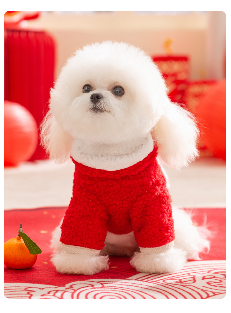 새 개 새해 옷 가을과 겨울 새해 해피 두 다리 양털 테디 빅서 작은 개 고양이 옷스토어 가기
