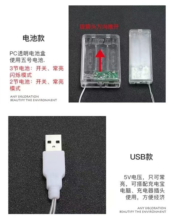 • 6.4m 조명 USB 배터리 박스 이중 사용 8가지 모드(리모컨 포함)