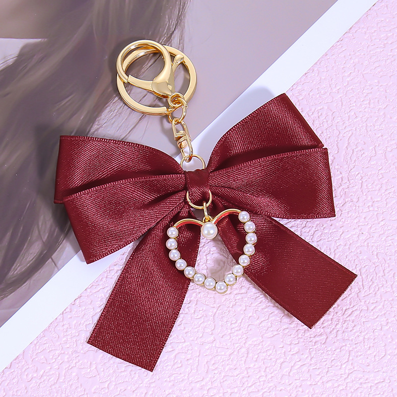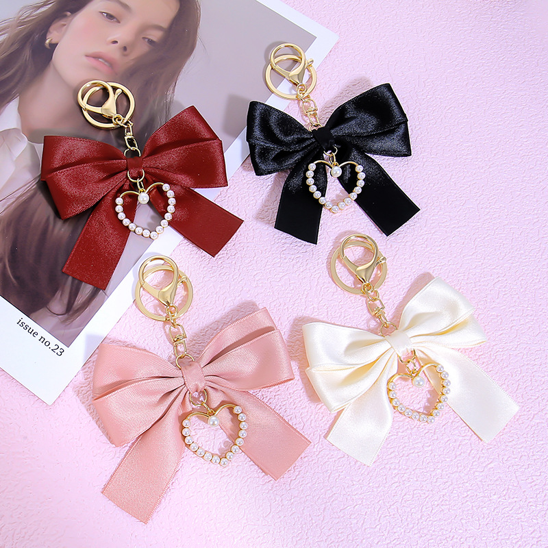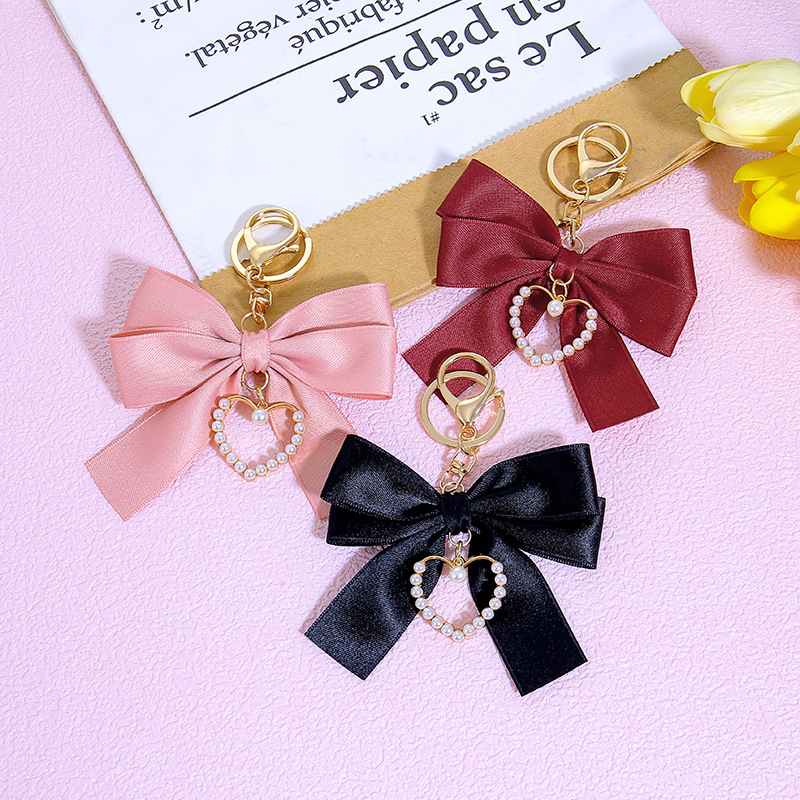 창조적 인 합금 사랑 심장 성격 진주 직물 활 펜던트 가방 휴대 전화 케이스 키 체인 매달려 장식품