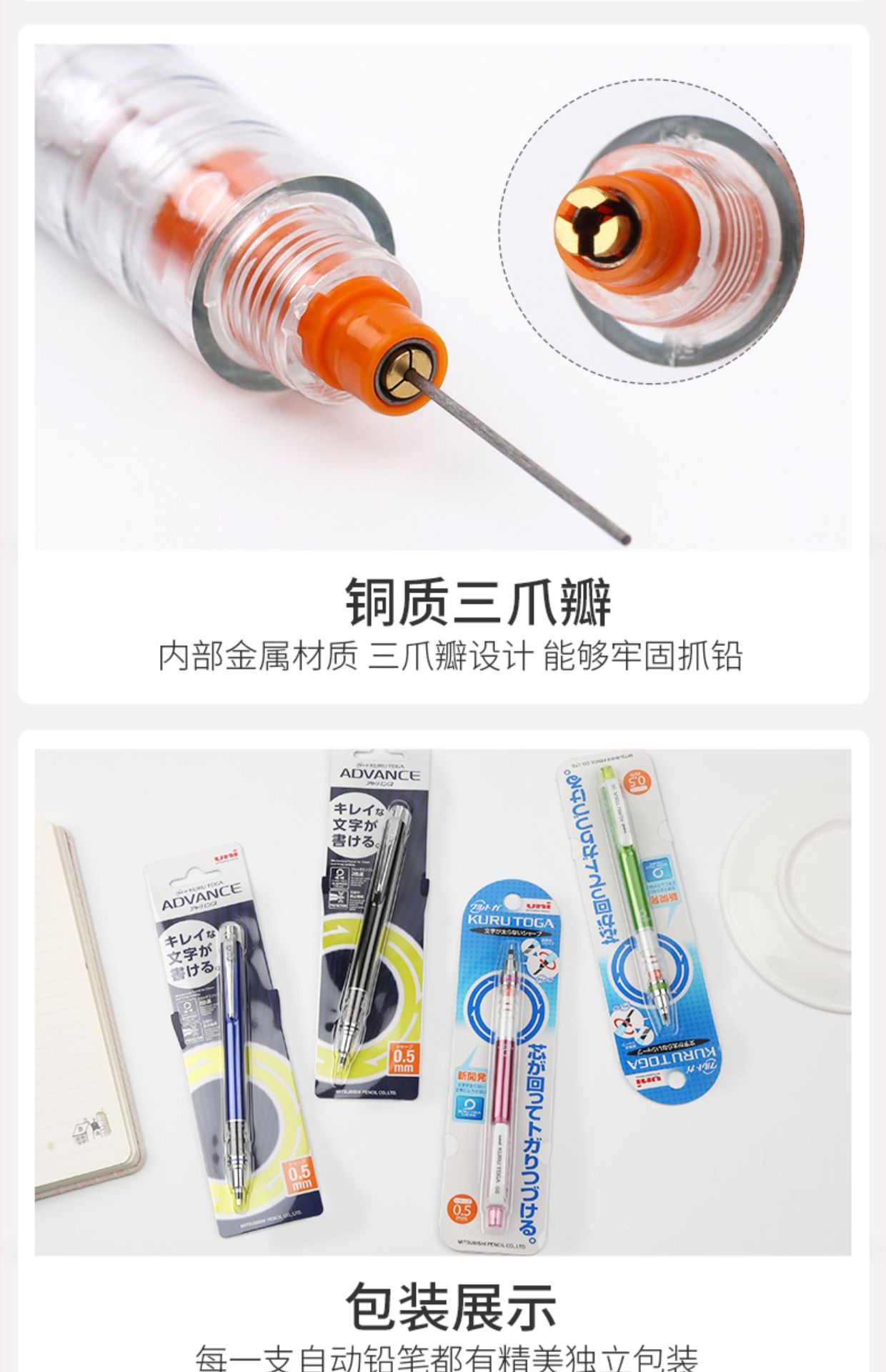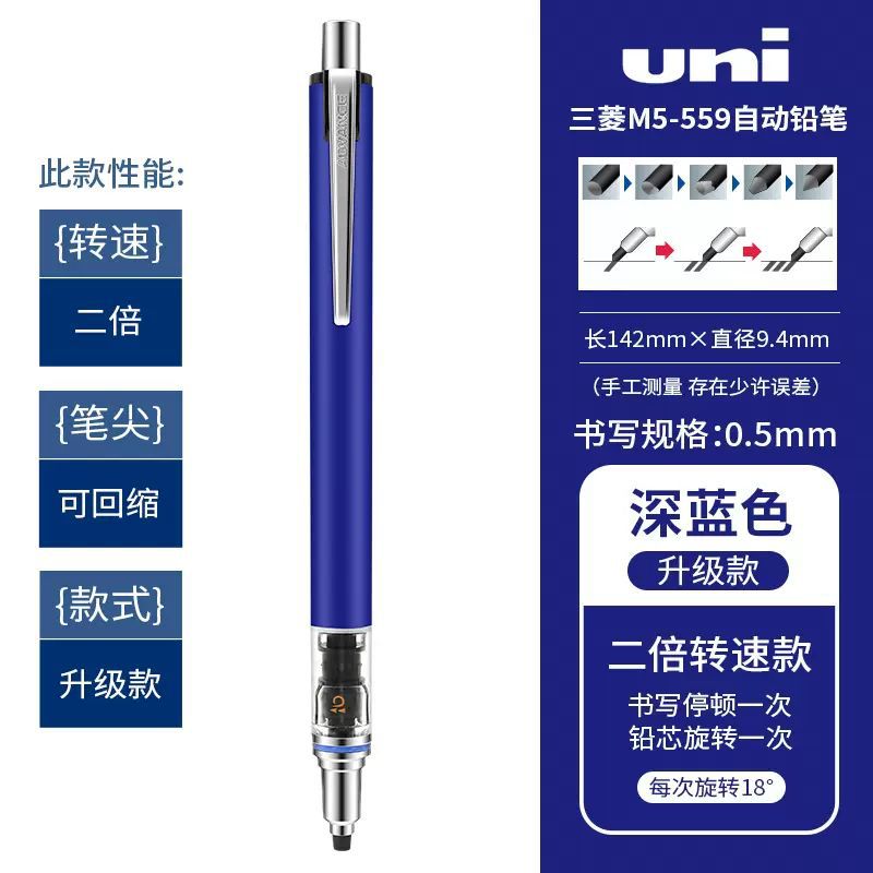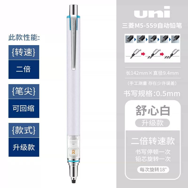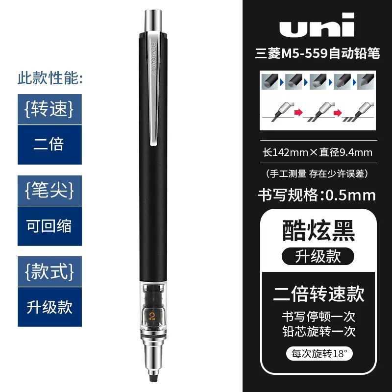 일본 UNI 미쓰비시 자동 연필 M5-559 자동 회전 쿠루 토가 학생 0.5mm 블랙 기술