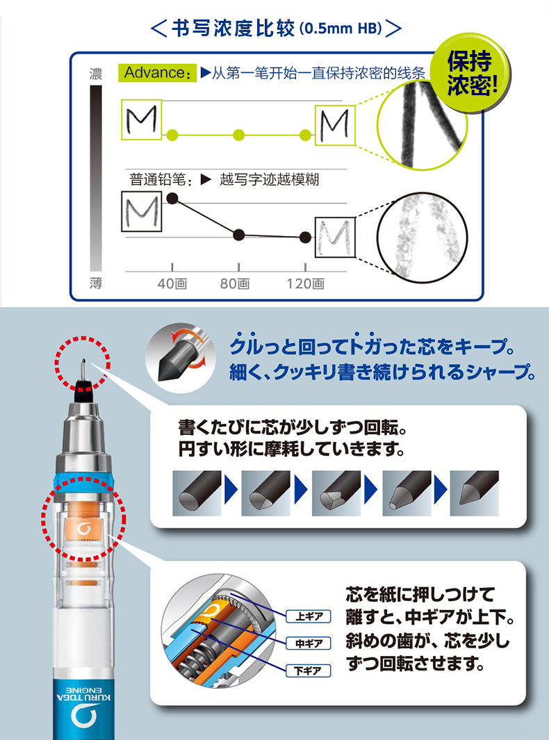 일본 UNI 미쓰비시 자동 연필 M5-559 자동 회전 쿠루 토가 학생 0.5mm 블랙 기술스토어 가기