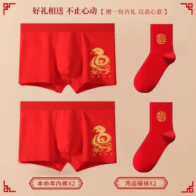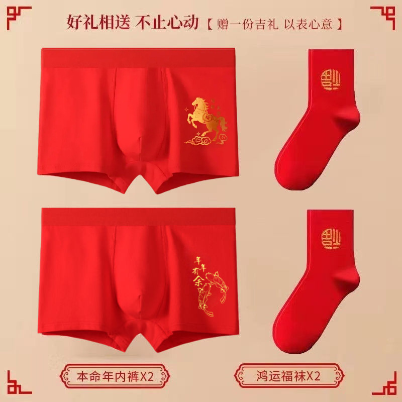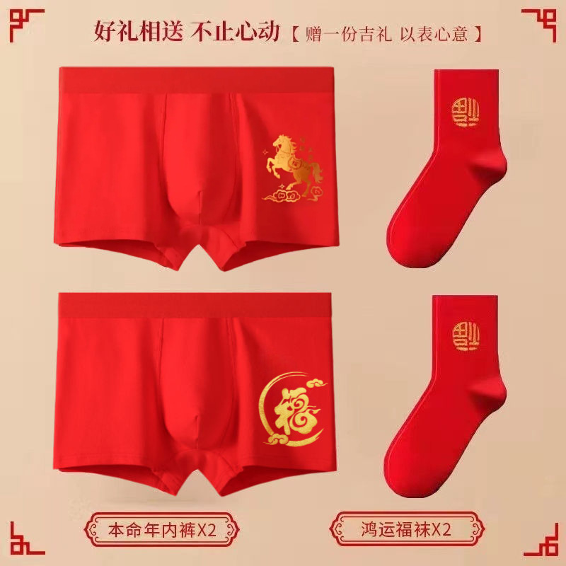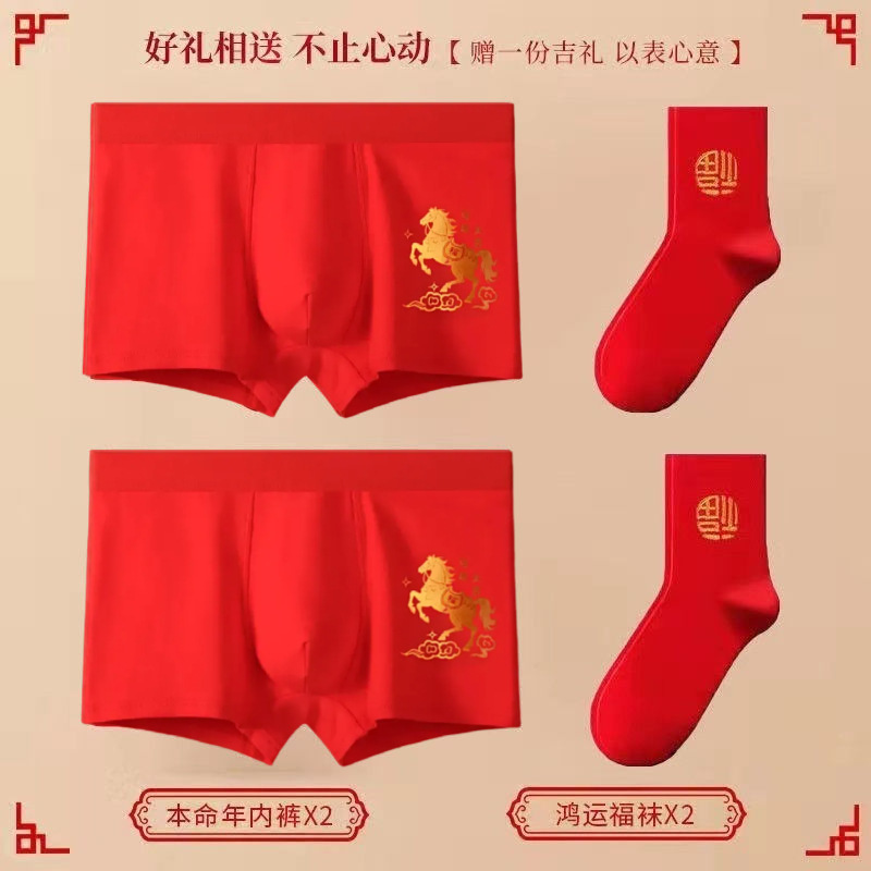말의 해(干支)의 생년월일에 입는 중국 전통 빨간색 프린트 남성용 사각팬티, 순면, 밝은 빨간색, 항균 기능성 사각팬티스토어 가기