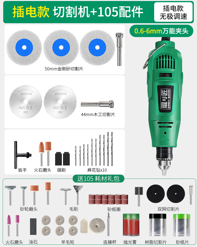 • 업그레이드된 고출력 410W 절단기: 금속 절단 및 연삭 패키지