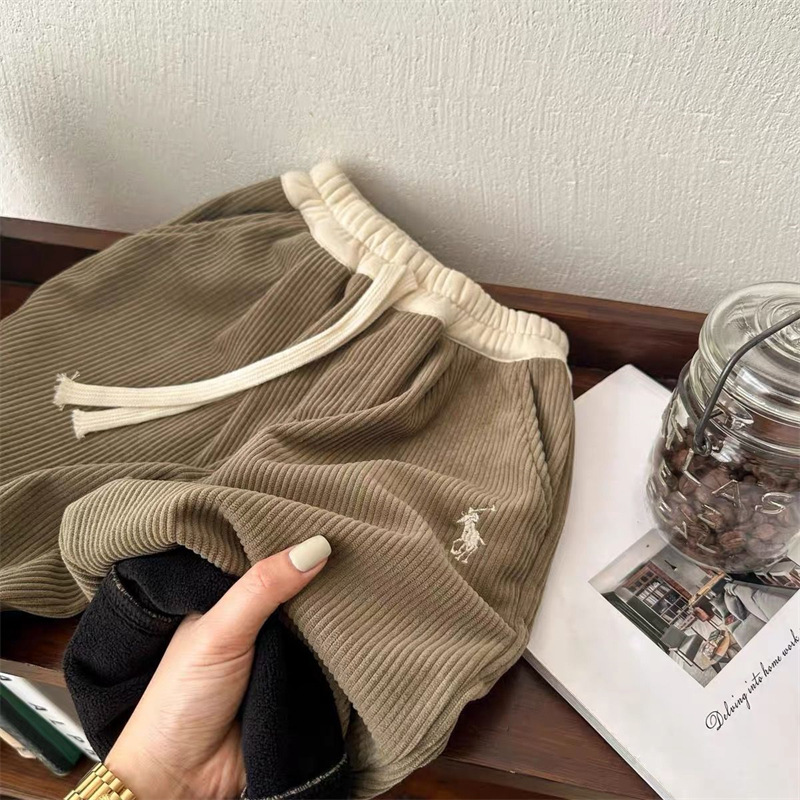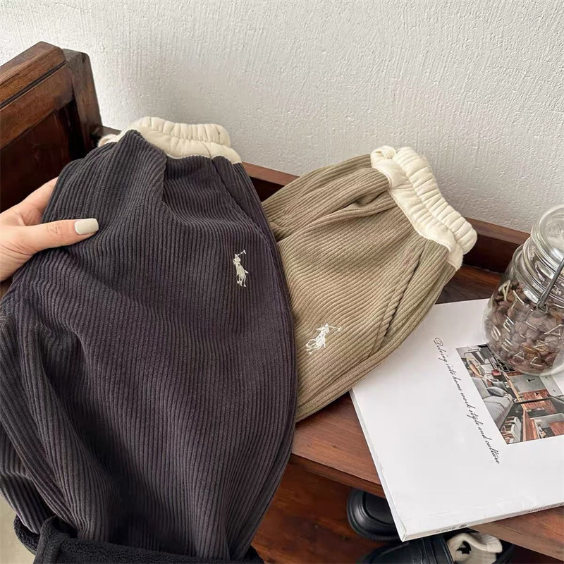 어린이 코듀로이 바지 2024 겨울 소년의 겨울 두꺼운 원피스 벨벳 바지 어린이 겨울 스트레이트 다리 바지스토어 가기