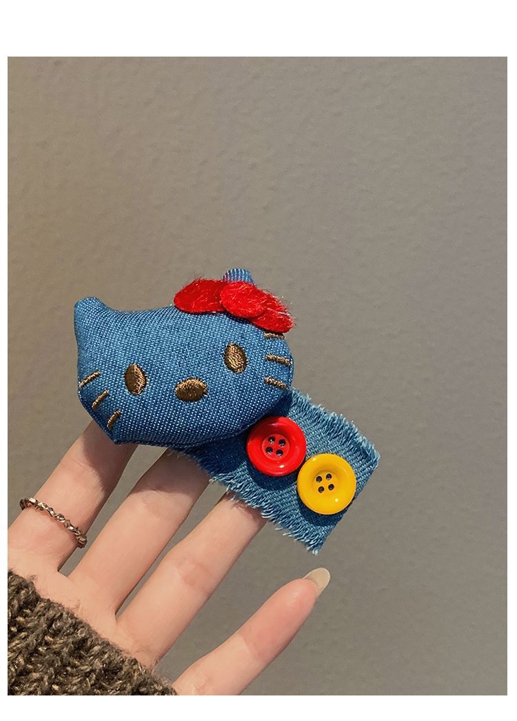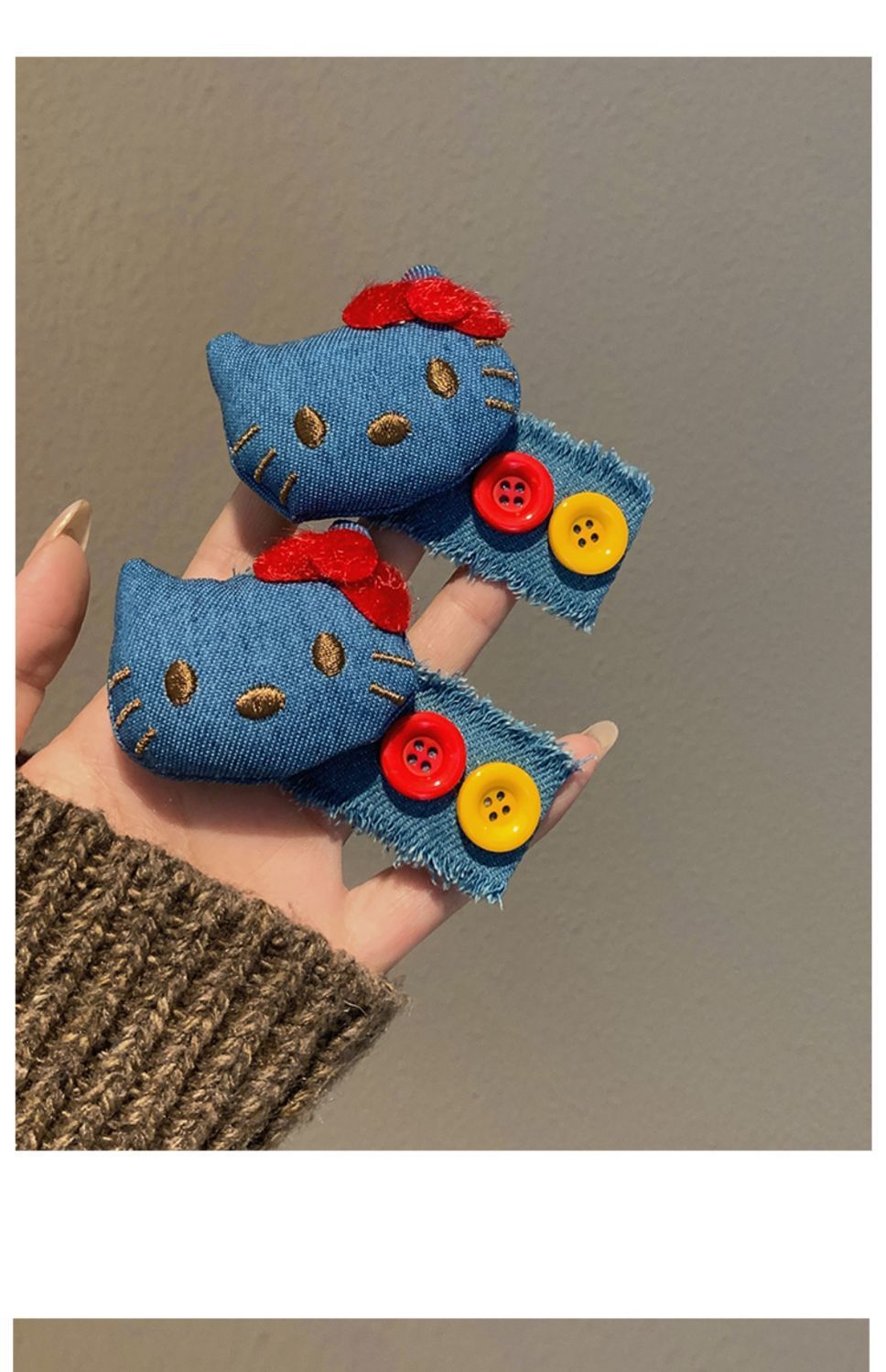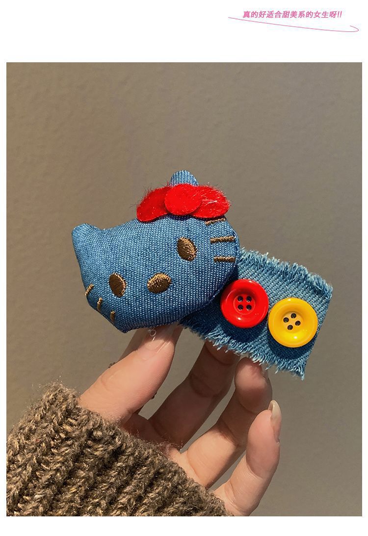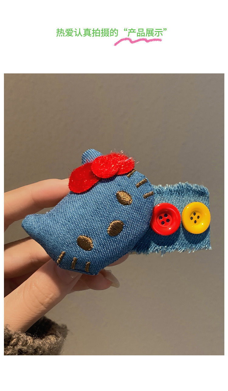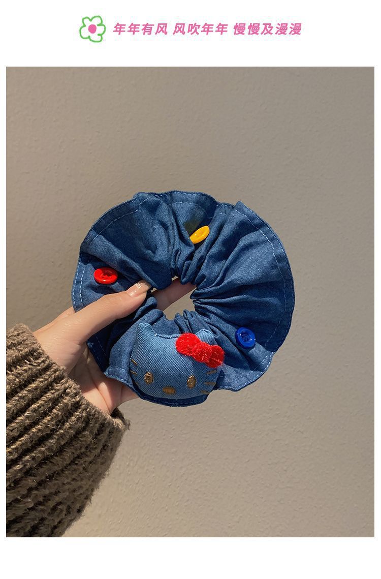 귀여운 데님 키티 고양이 버튼 스퀘어 스카프 대형 내장 헤어 링 여성 한국 스타일 레트로 스퀘어 하이 엔드 센스 헤드 라인 헤어 액세서리스토어 가기