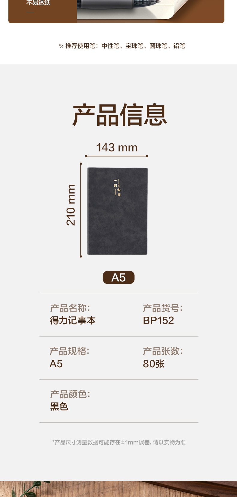 델리 BP152 가죽 노트북 5 210mm × 143mm80 노트북 두꺼운 가죽 노트북 사무실
