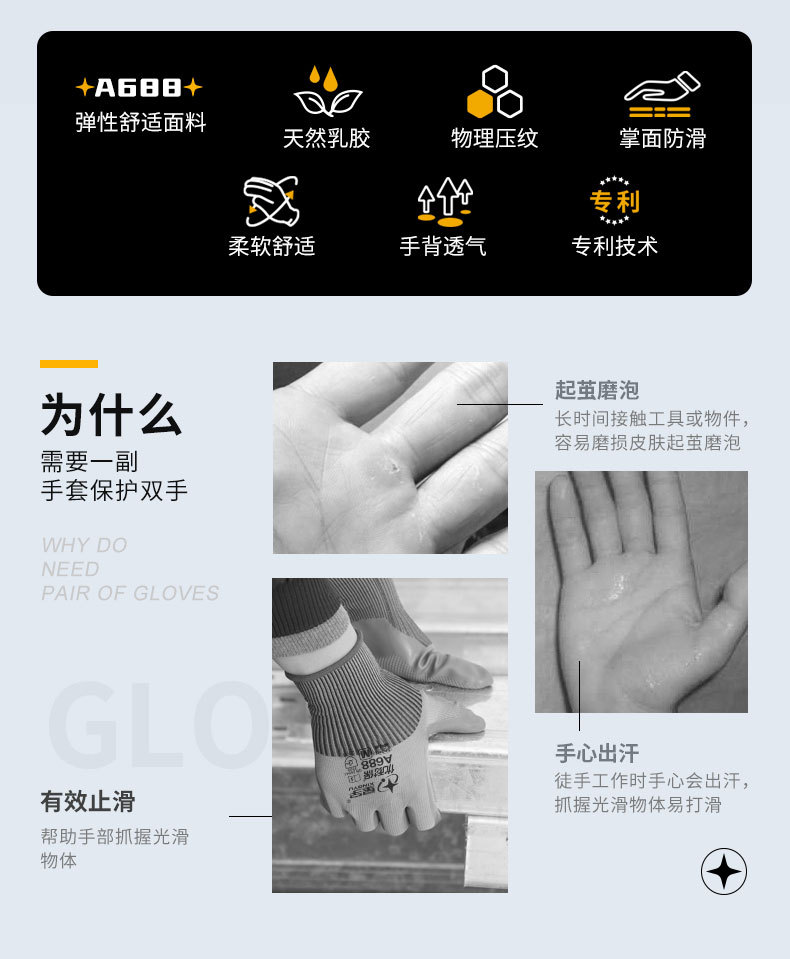 Xingyu 정품 A688 우수한 보호 장갑 12 쌍의 건설 현장 철강 노동자 내마모성 통기성 미끄럼 방지 보호 장갑스토어 가기