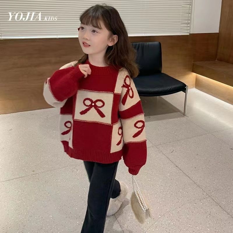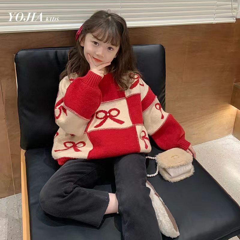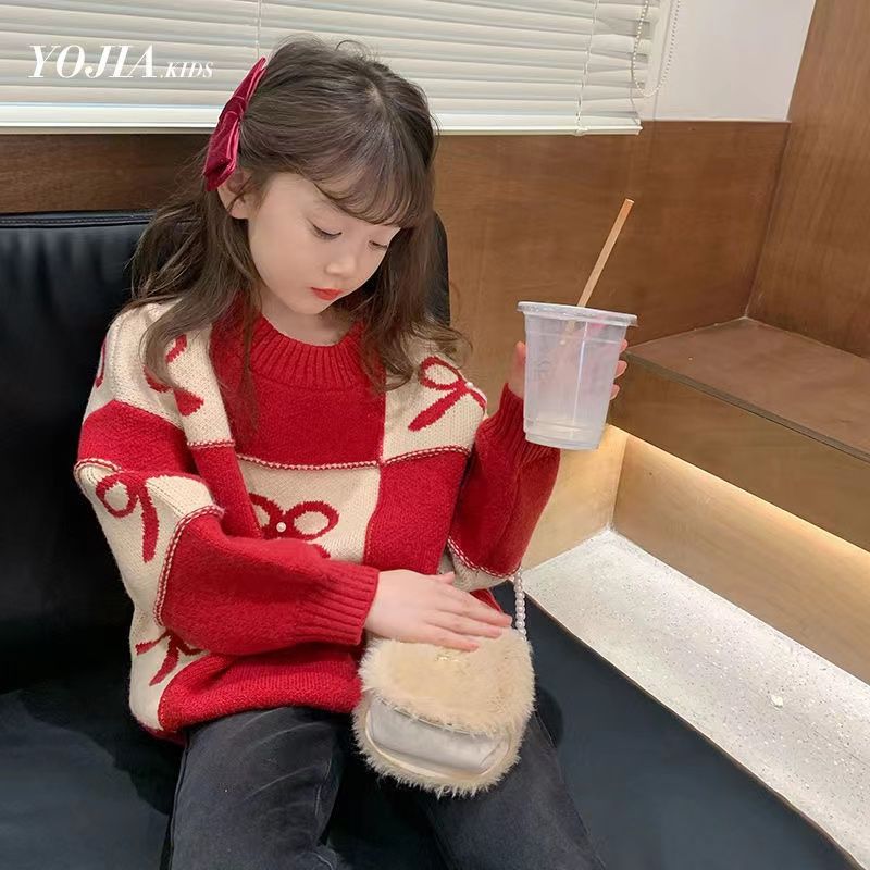 하이 퀄리티 설날 봄 축제 새 여아 니트웨어 스웨터 겨울 따뜻한 중대형 어린이 풀오버 두껍게베이스 셔츠