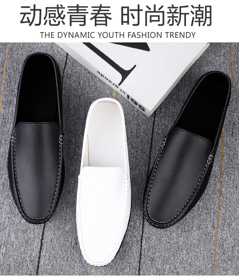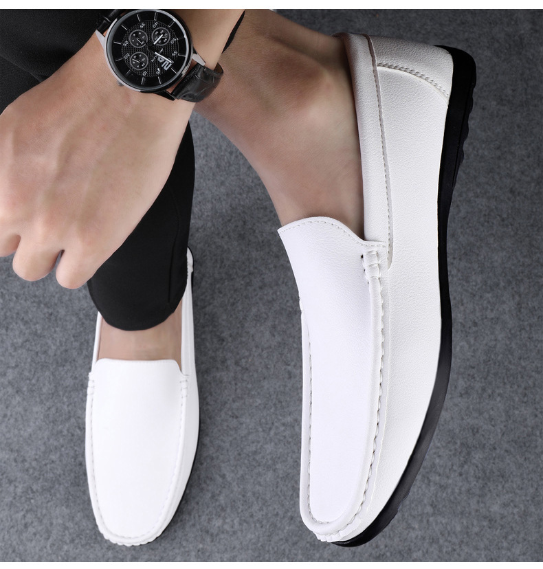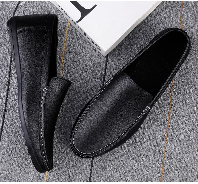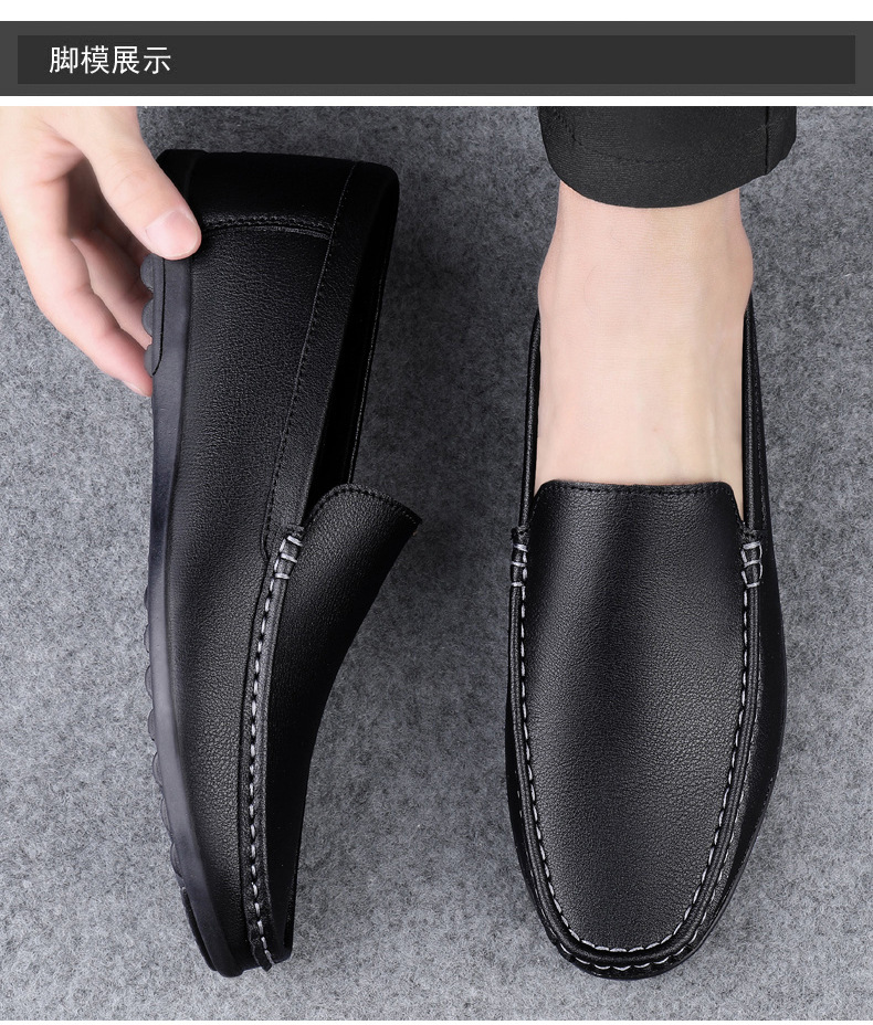 가을 2024 새로운 단색 트렌디 한 캐주얼 가죽 신발 패션 간단한 남성 캐주얼 신발 둥근 발가락 플랫 힐링 완두콩 신발스토어 가기