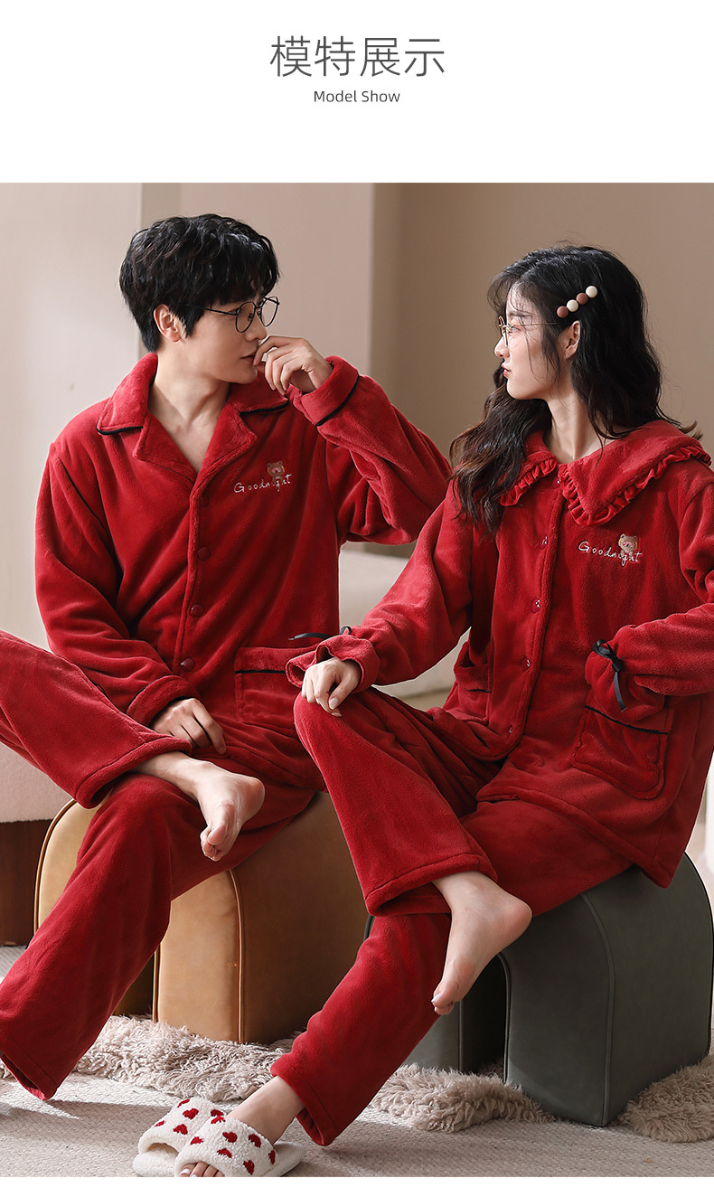 잠옷 웨딩 커플 세트 붉은 겨울 산호 양털 절묘한 가을/겨울 플란넬 커플 잠옷스토어 가기