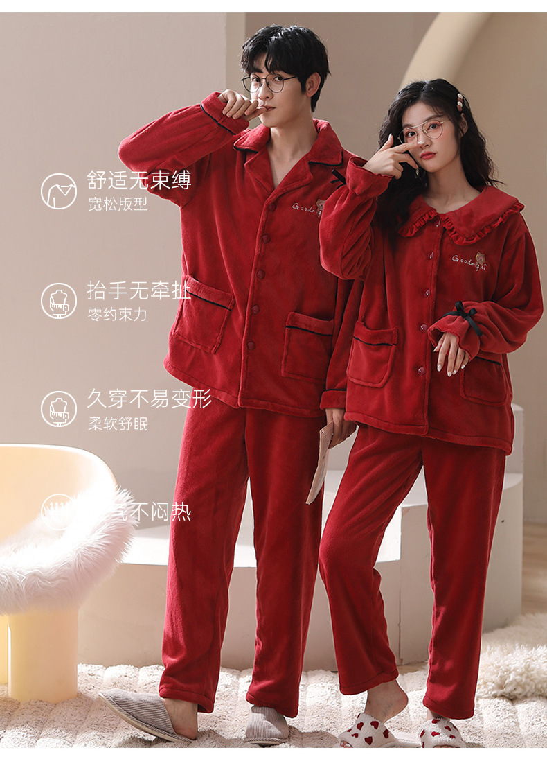 잠옷 웨딩 커플 세트 붉은 겨울 산호 양털 절묘한 가을/겨울 플란넬 커플 잠옷
