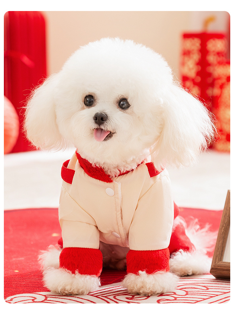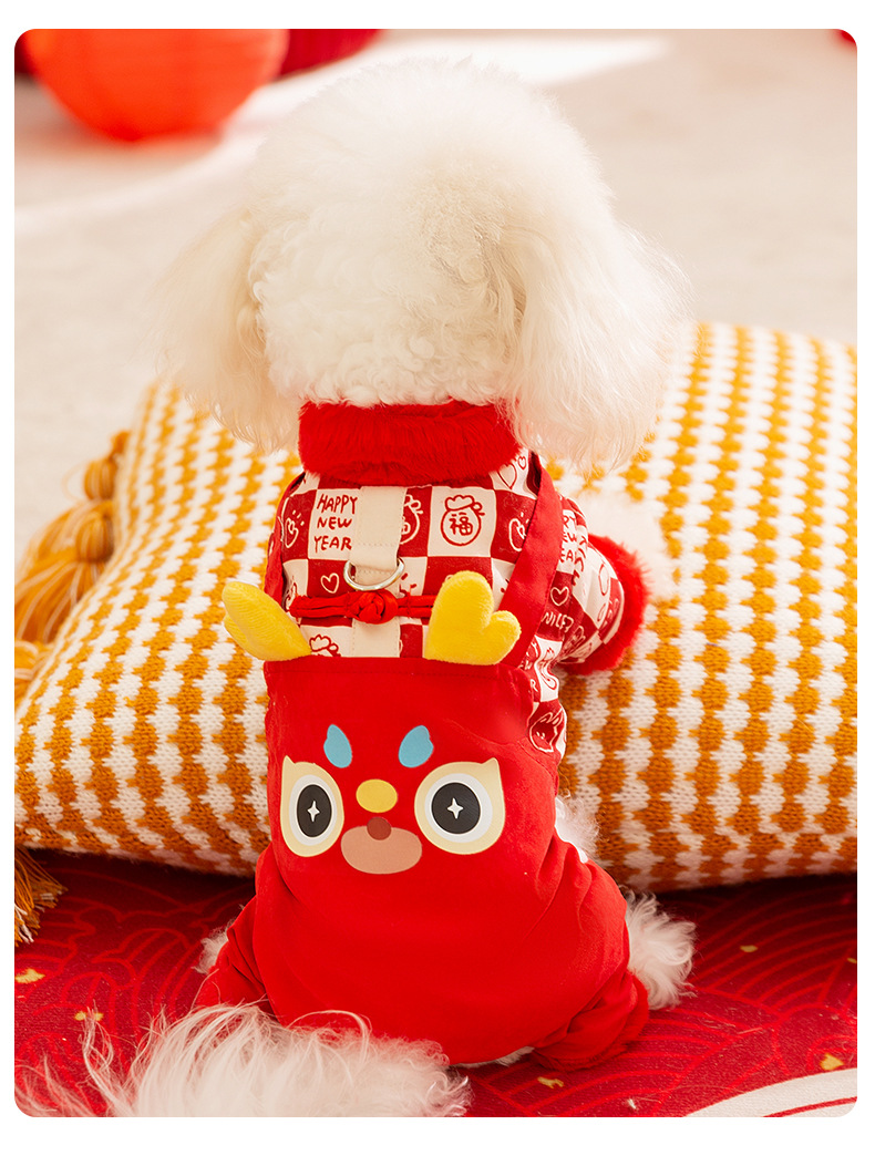 가을과 겨울 개 스트랩 사자 댄스 견인 새해 네 다리 면 옷 따뜻한 외출 중소형 개 테디 애완 동물 의류