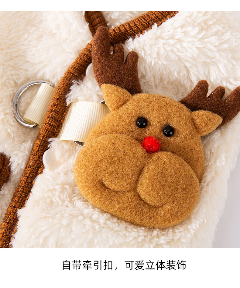 개 옷 가을과 겨울 귀여운 3 차원 엘크 견인 양털 원피스 원피스 따뜻한 테디 Bixu 애완 동물 옷
