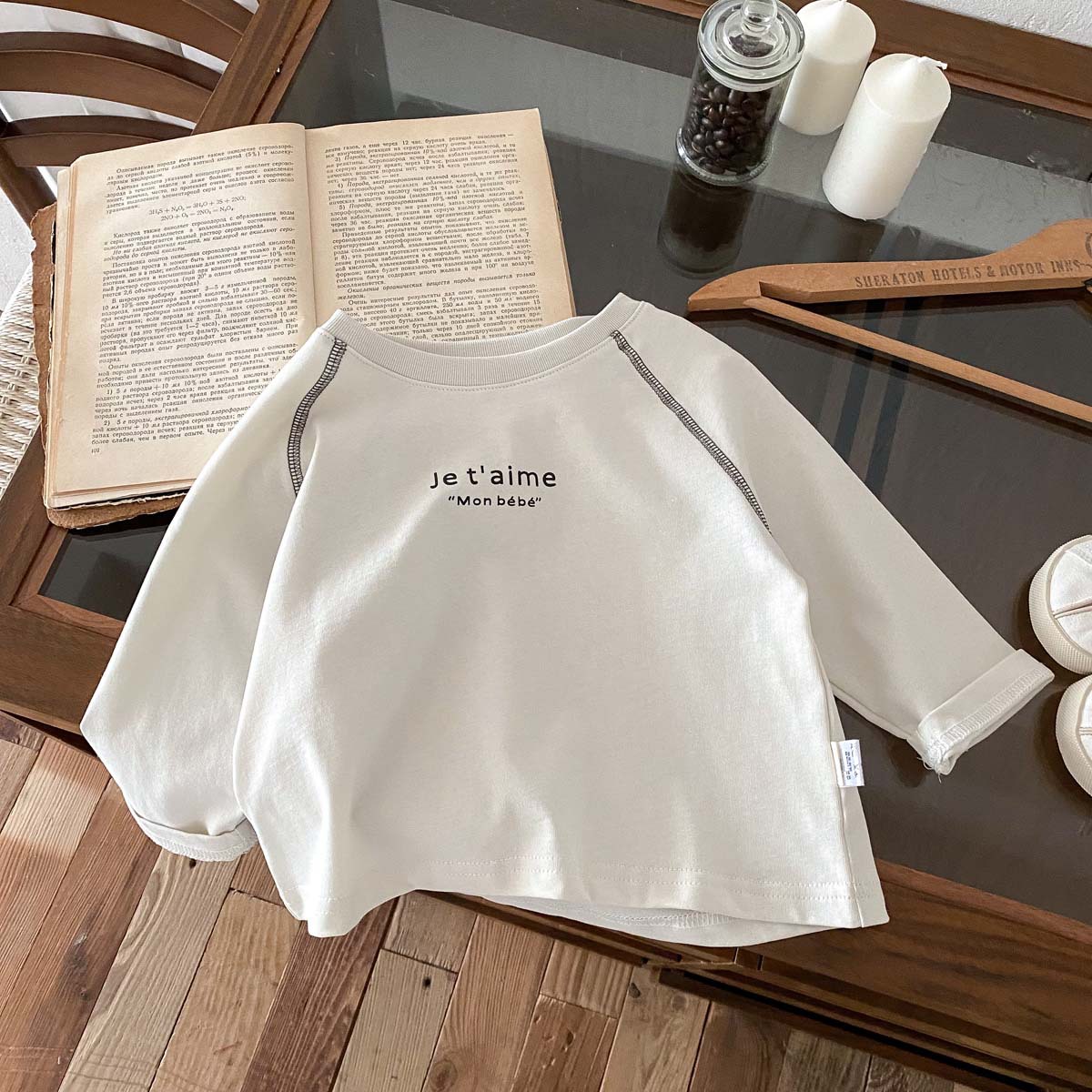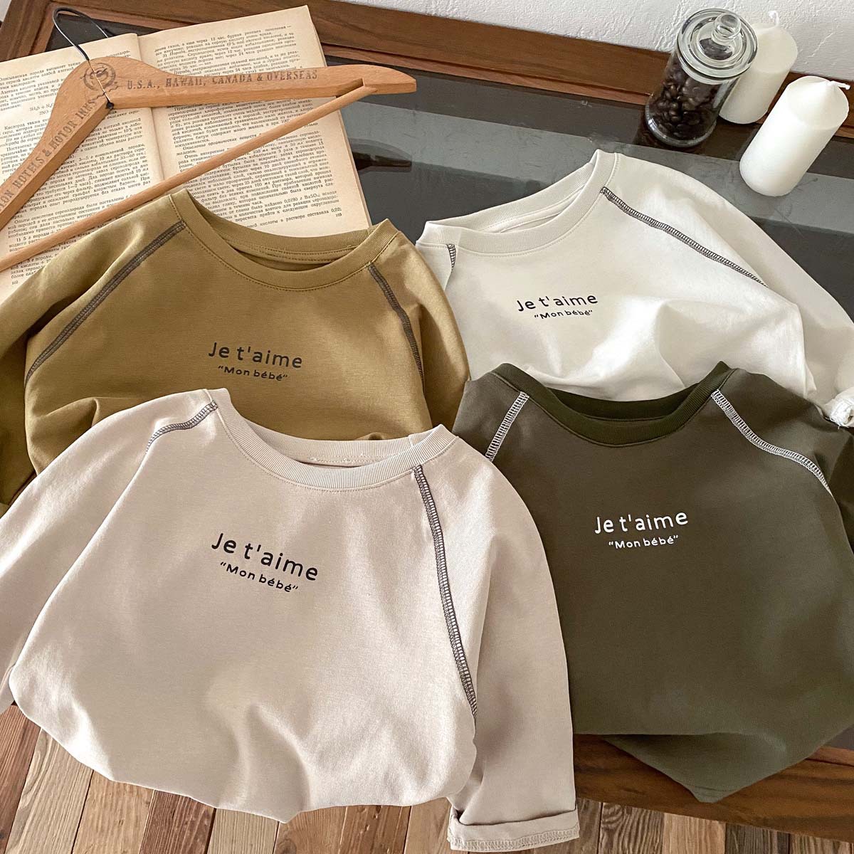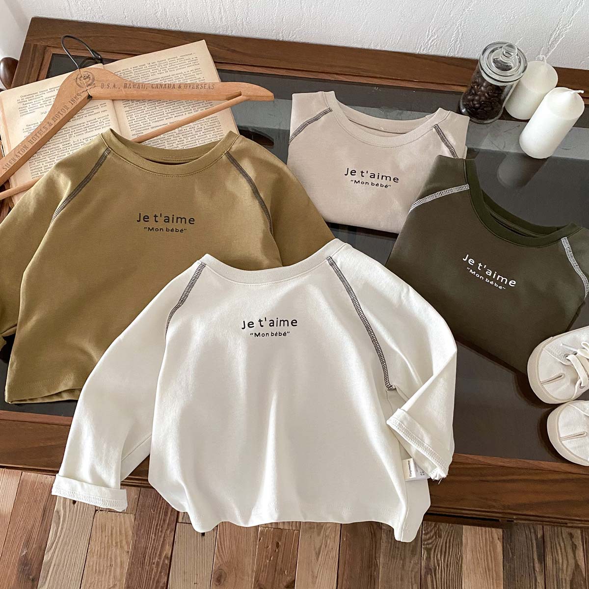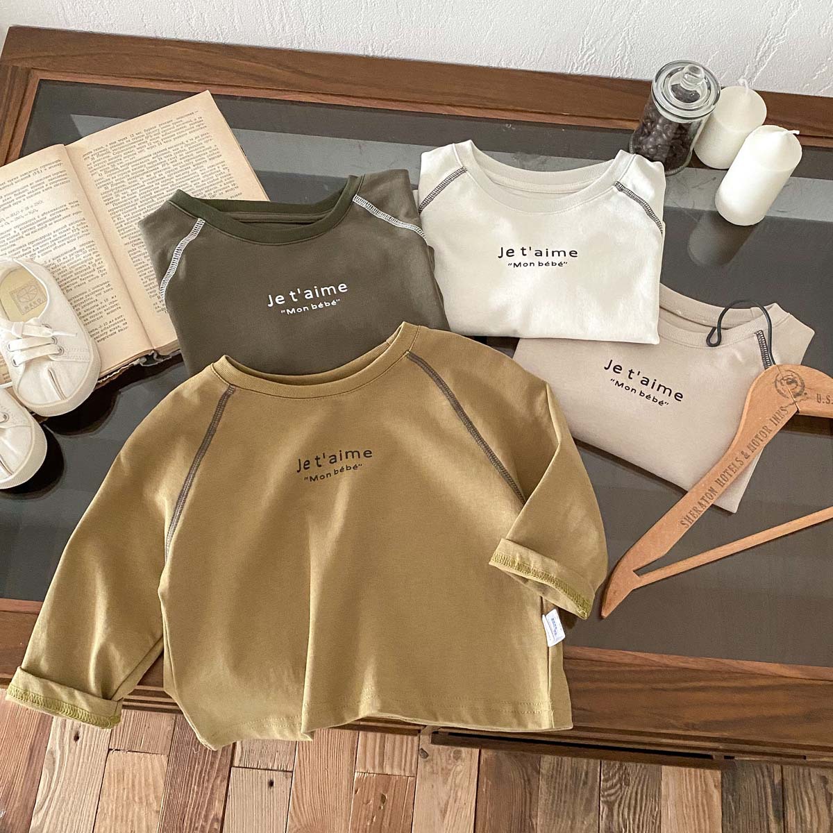 어린이 2024 새 봄과 가을 긴팔 티셔츠 아기 소년과 소녀 간단한 편지 올 매치 외출 탑베이스 셔츠스토어 가기