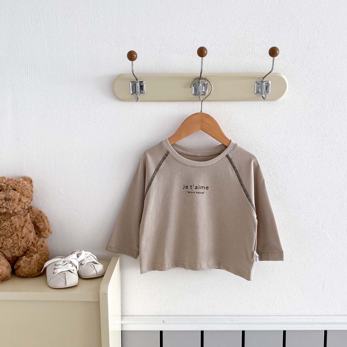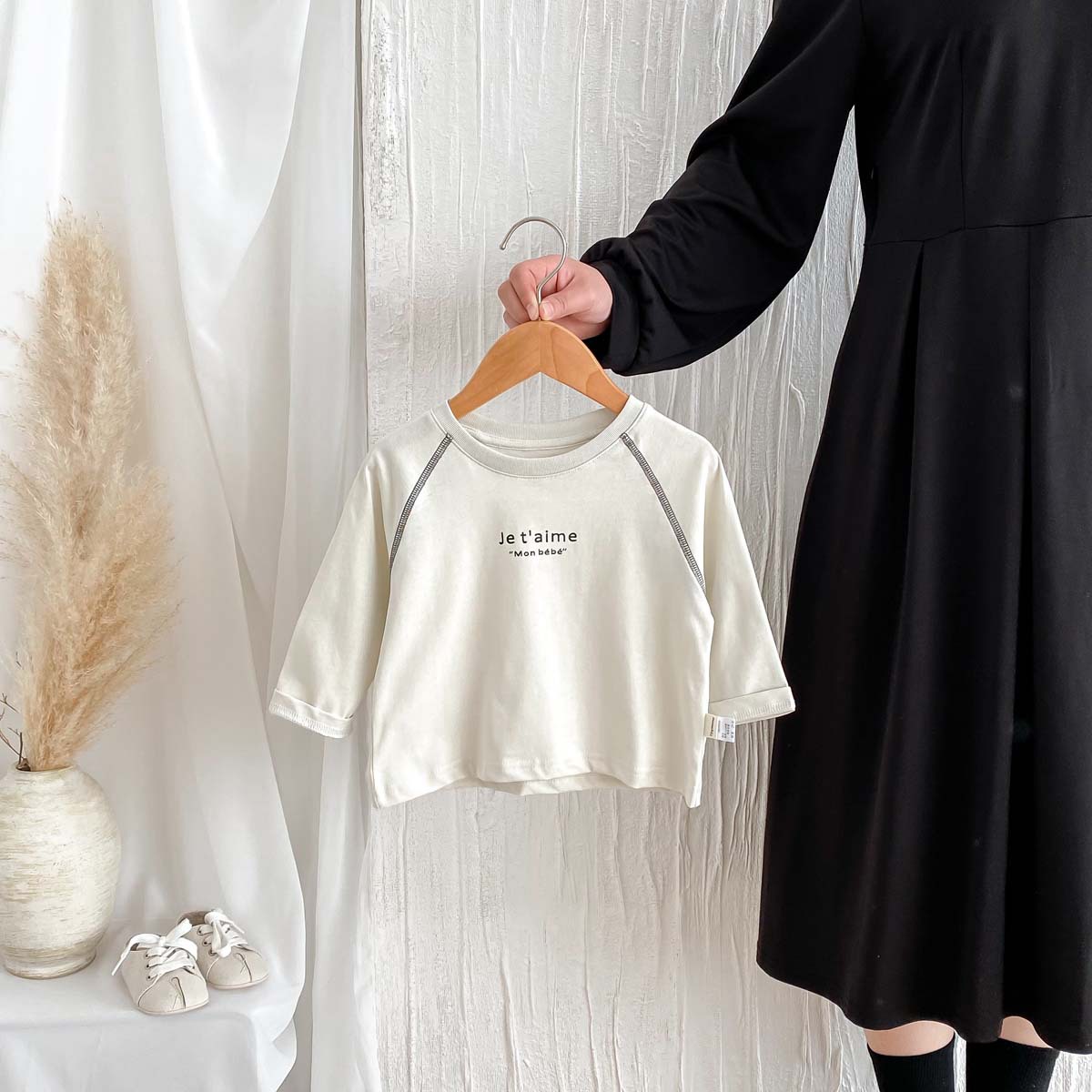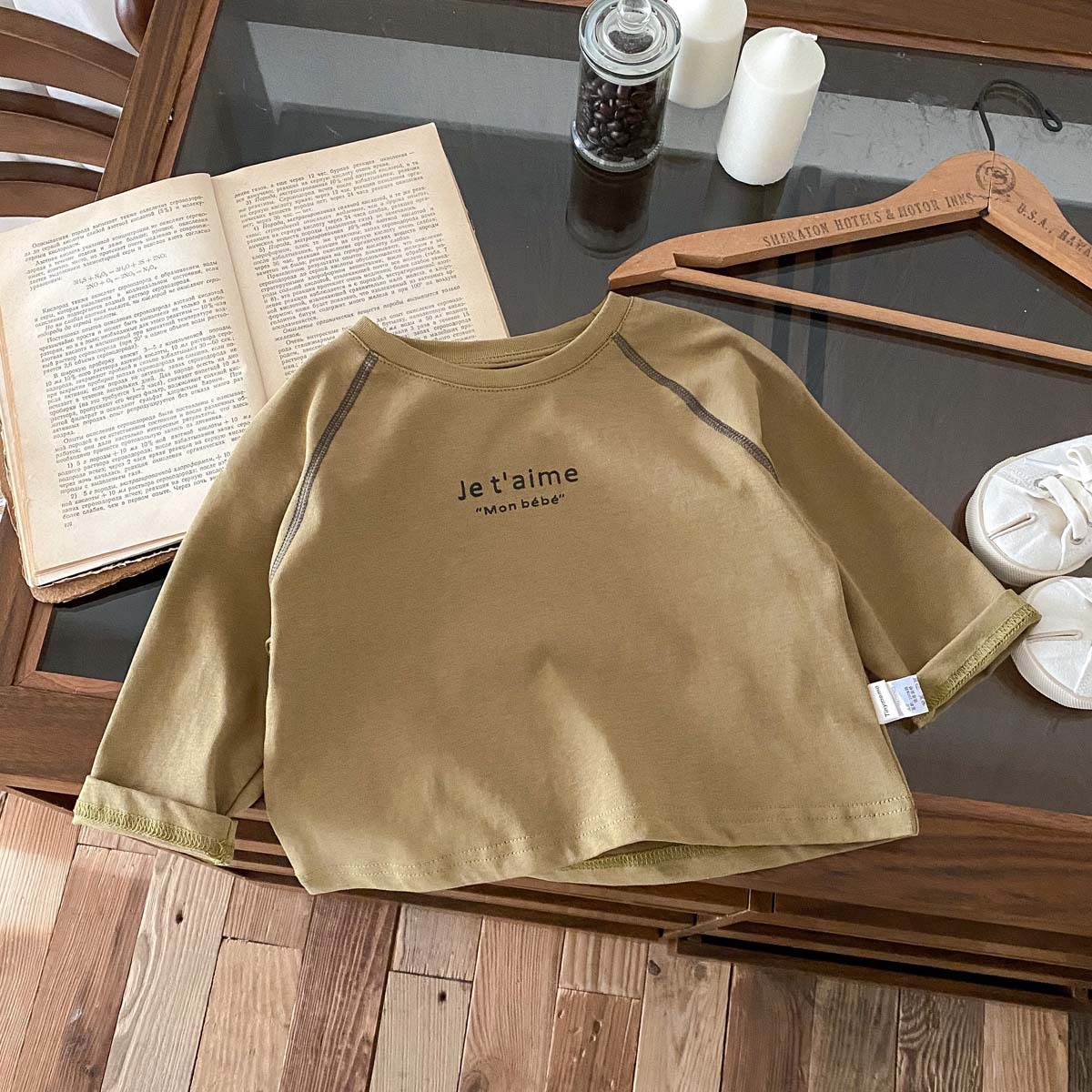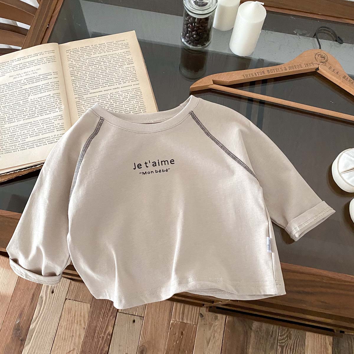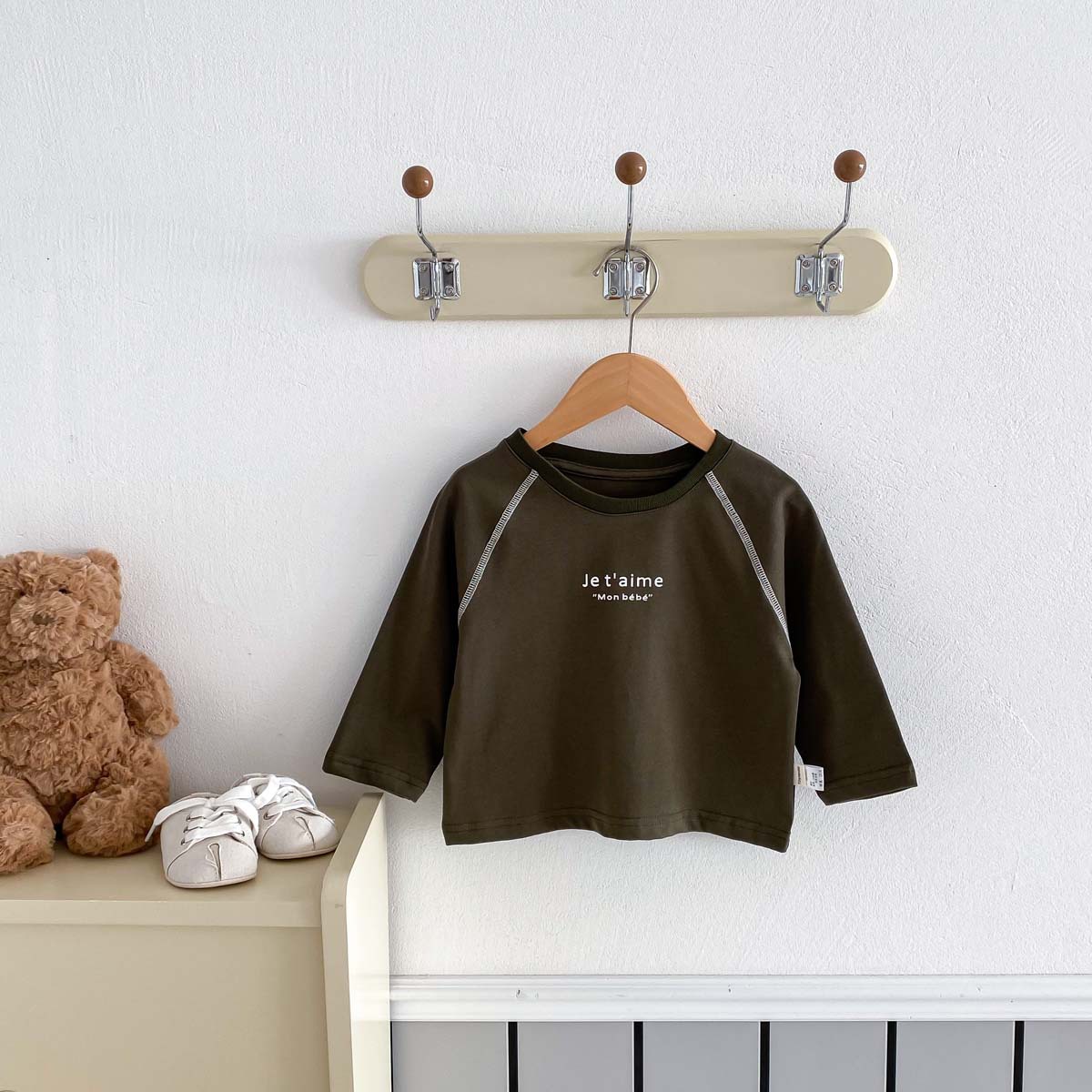어린이 2024 새 봄과 가을 긴팔 티셔츠 아기 소년과 소녀 간단한 편지 올 매치 외출 탑베이스 셔츠스토어 가기