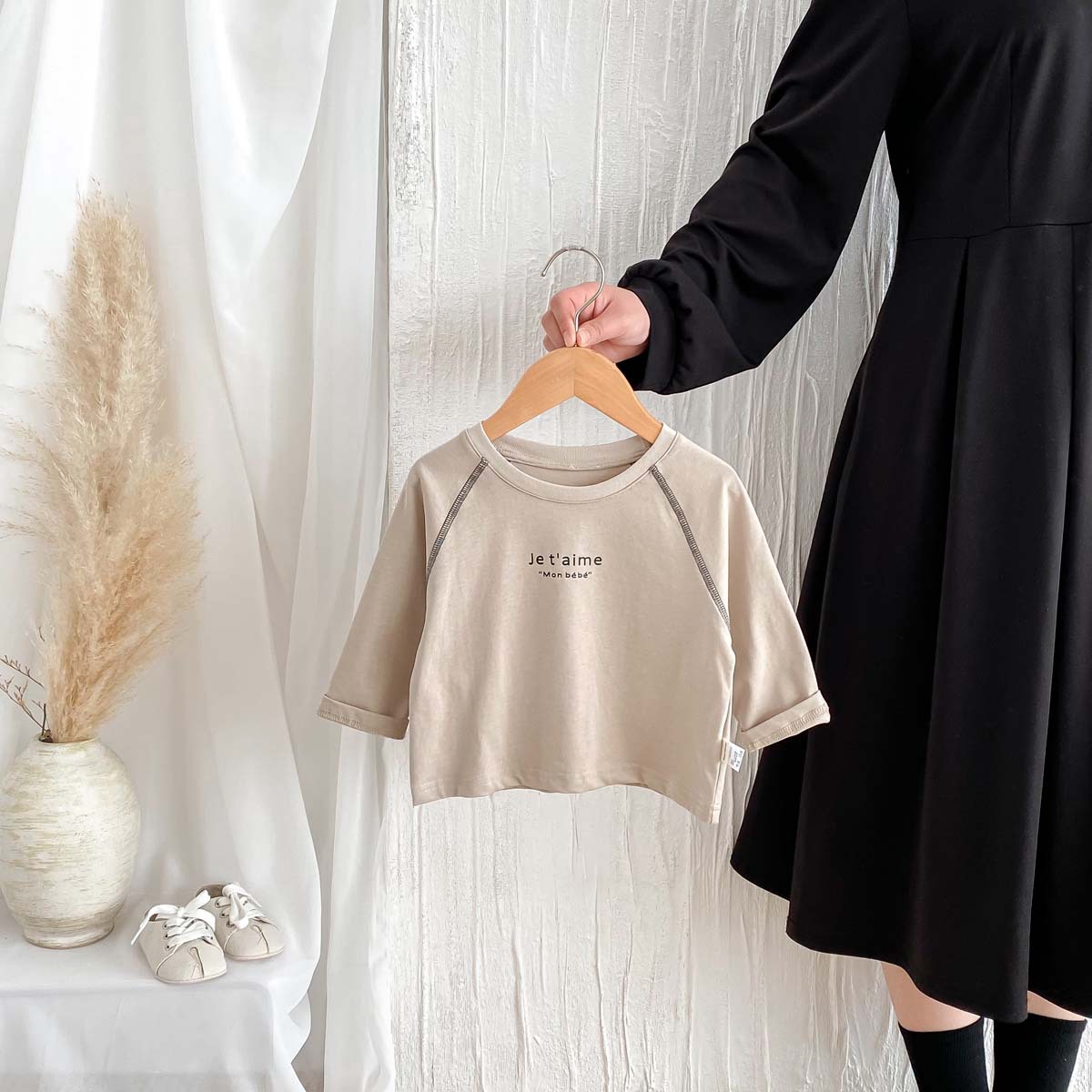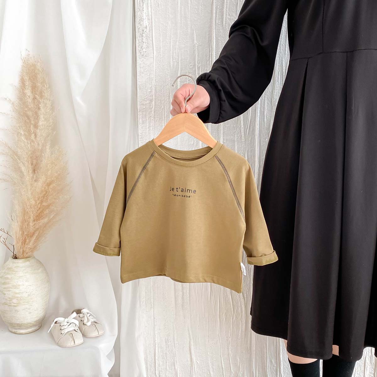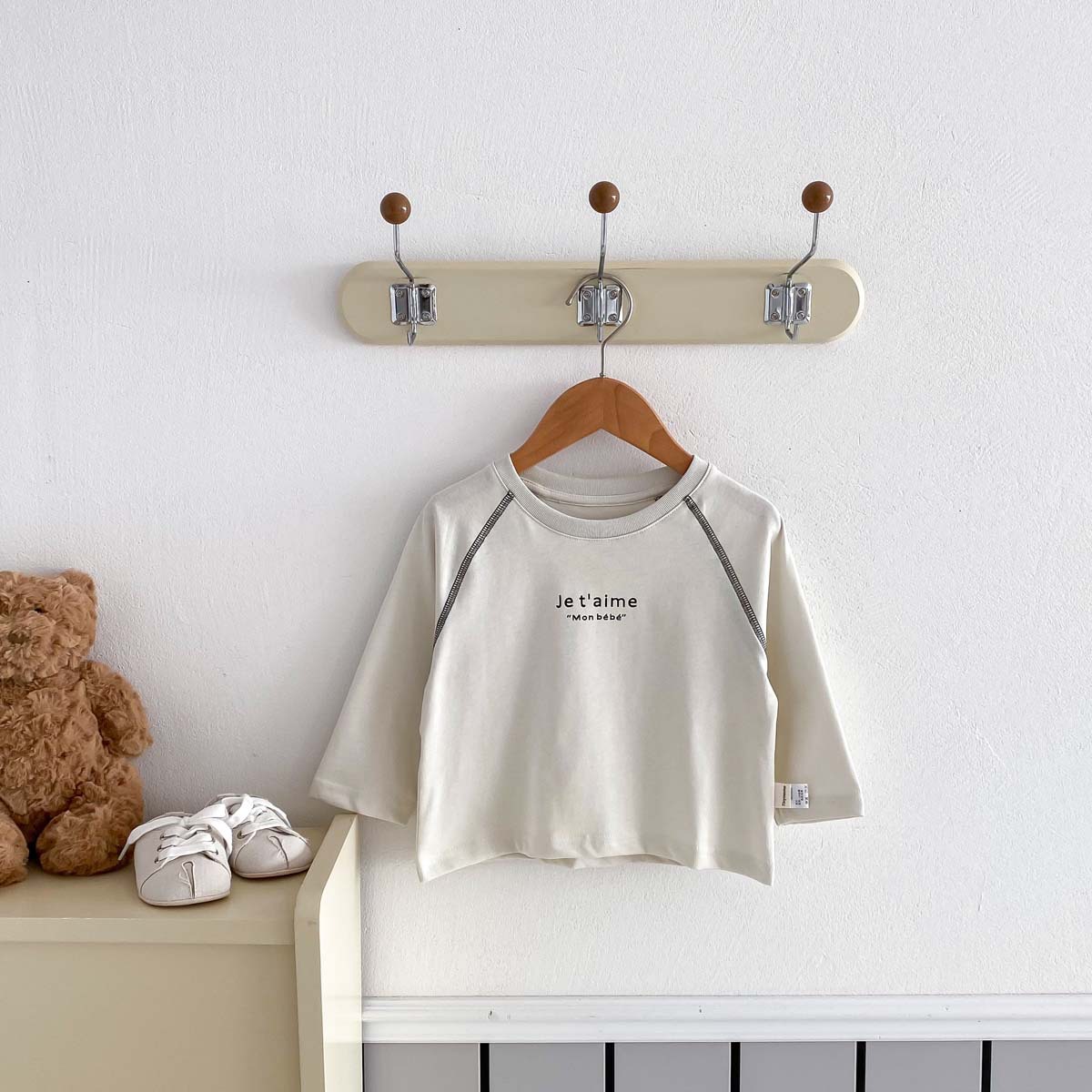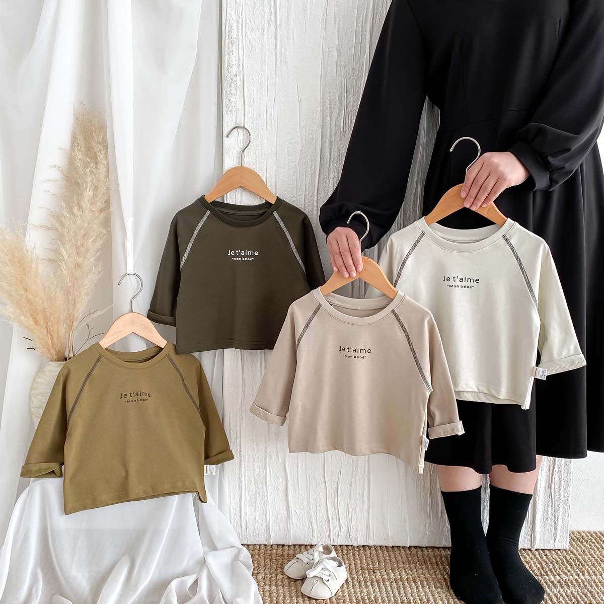 어린이 2024 새 봄과 가을 긴팔 티셔츠 아기 소년과 소녀 간단한 편지 올 매치 외출 탑베이스 셔츠스토어 가기