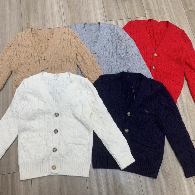 POL 가을 겨울 러브 소년 소녀 면 스웨터 니트 트위스트 패턴 긴팔 브이넥 가디건 스웨터 90-180