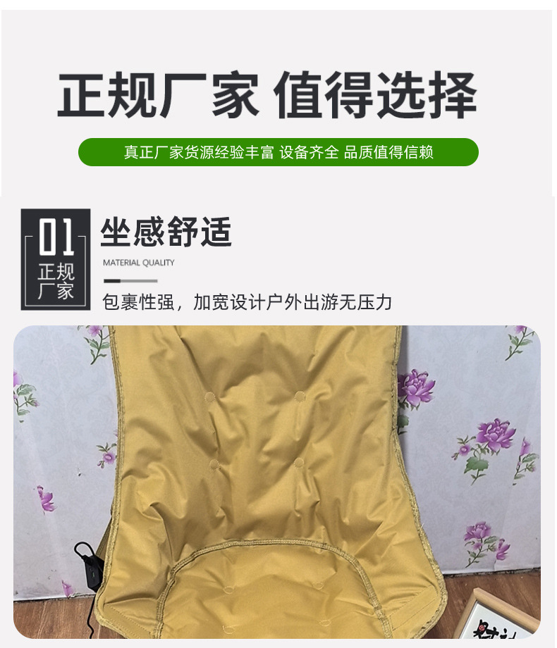 전기 가열식 등받이 높은 낚시 의자, 야외 휴대용, 높이 조절 가능 캠핑 의자, 두꺼운 면 소재 접이식 의자, 캠핑용스토어 가기