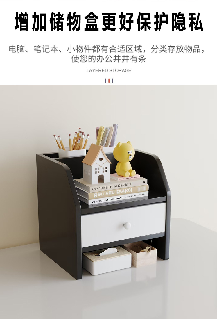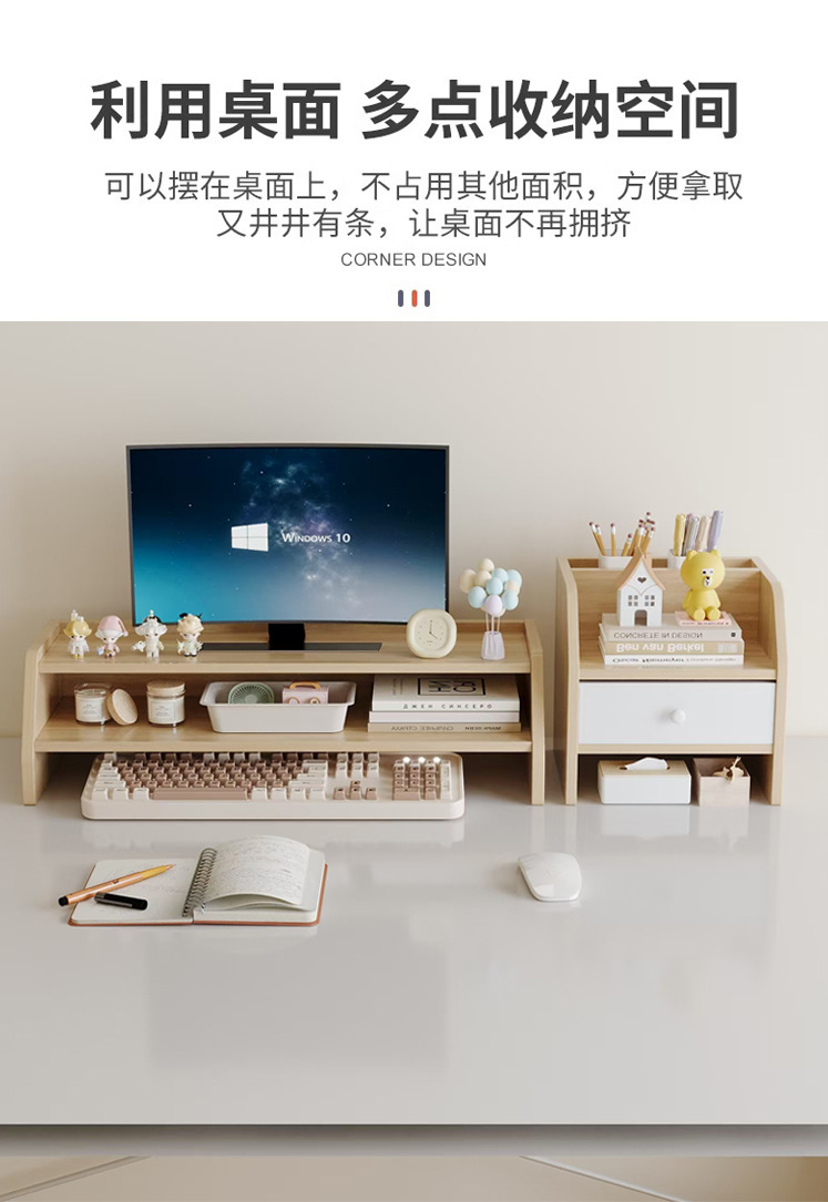 • 나뭇결 컬러 더블 레이어 + 서랍이 있는 수납 선반