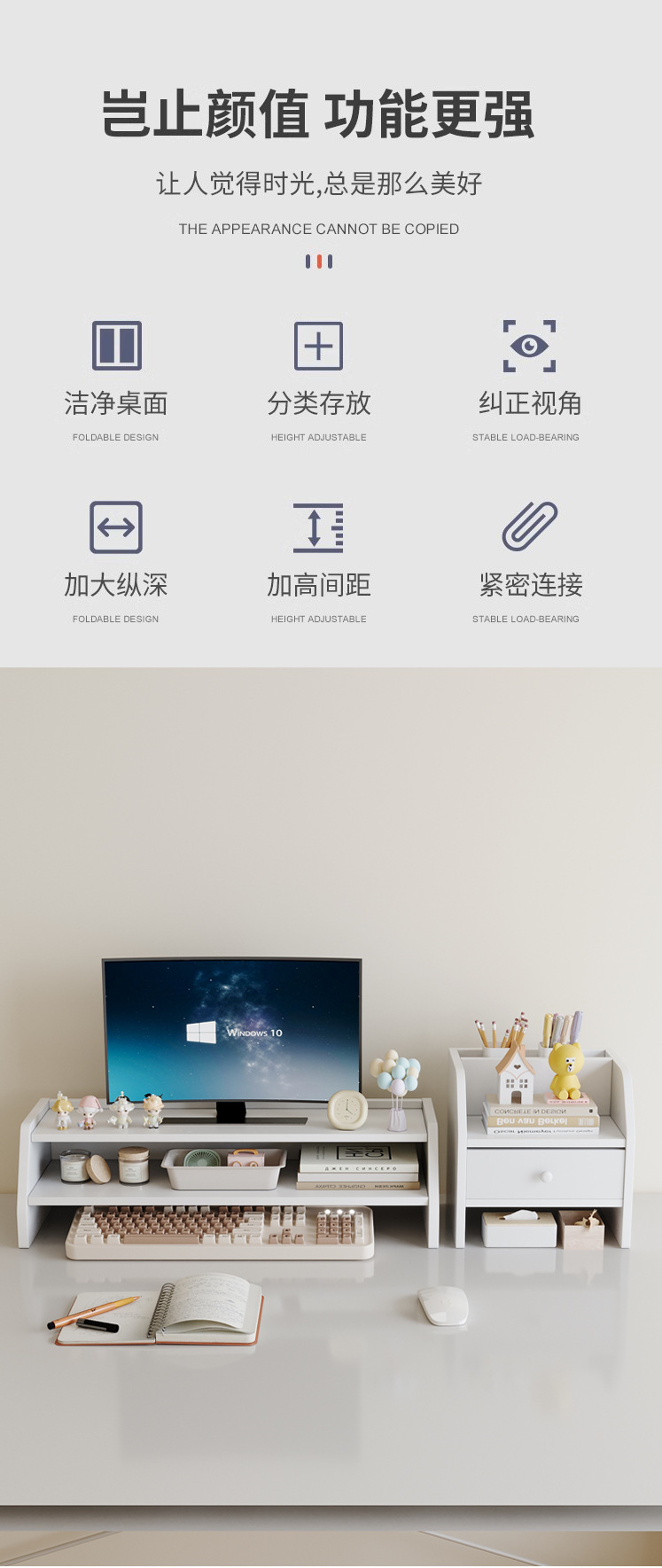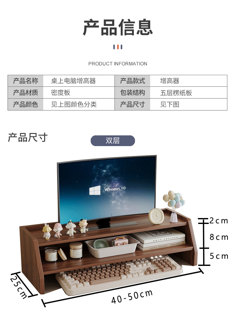 간단한 컴퓨터 모니터 강화 랙 더블 레이어 데스크 파일 홀더 다층 데스크탑 스토리지 랙 도매